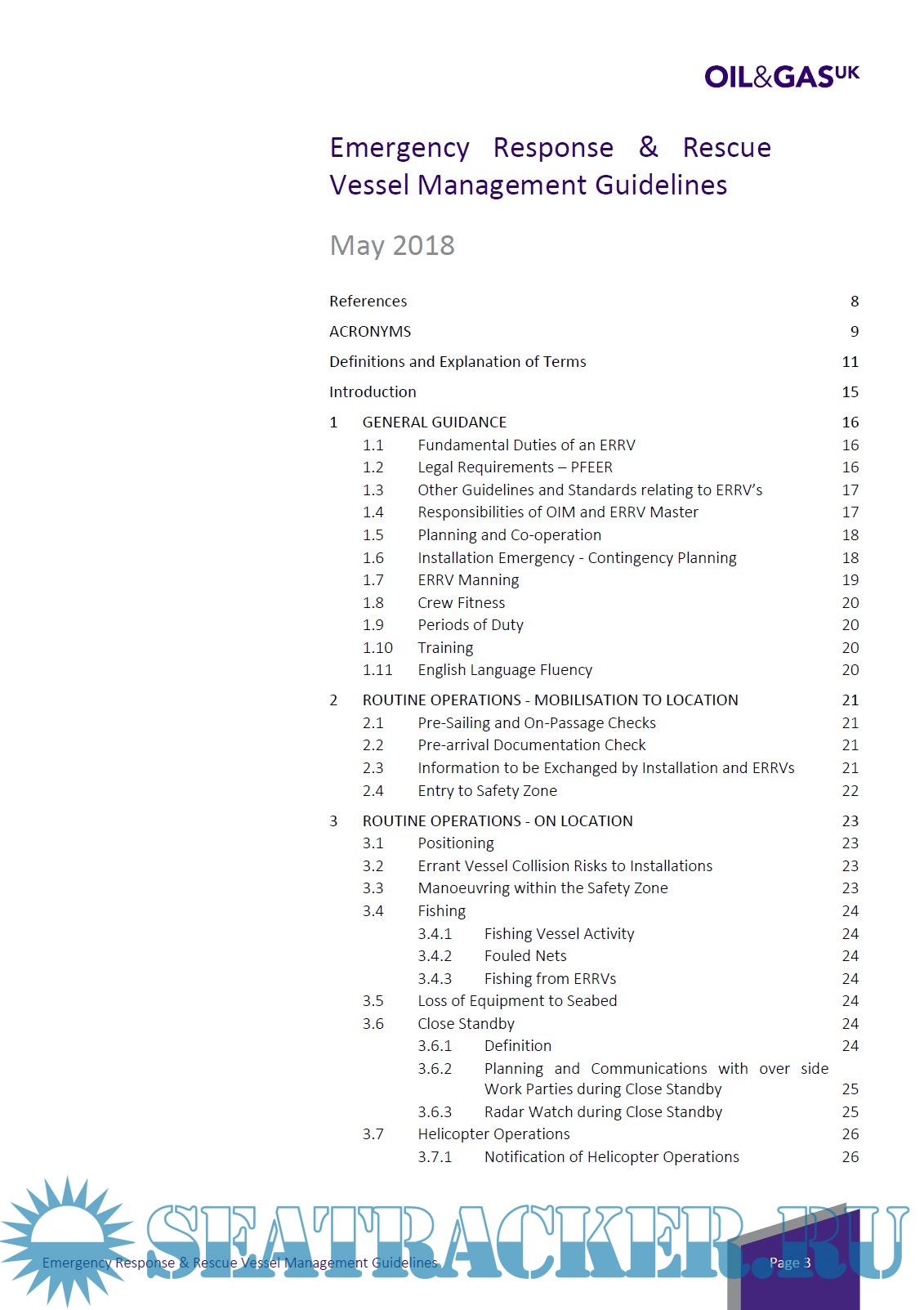 Year: 2018 Language: english Author: Oil & Gas UK Genre: Reference book Publisher: Oil & Gas UK Edition: issue 6 ISBN: 1 903 003 39 3 Format: PDF Quality: eBook Pages count: 106 Description: This guidebook intends to provide the crew members and Masters of the EERVs (Emergency Response and Rescue Vessels), as well as the Offshore Installation Managers, and all other personnel involved in the offshore operations, with the general technical guidance regarding the proper conduct of those operations as part of the recovery arrangements. Routine operations, as well as emergency response, adverse weather standards and environmental emergencies operations are detailed. This guidebook complements the Industry “Emergency Response & Rescue Vessel Survey Guidelines”.