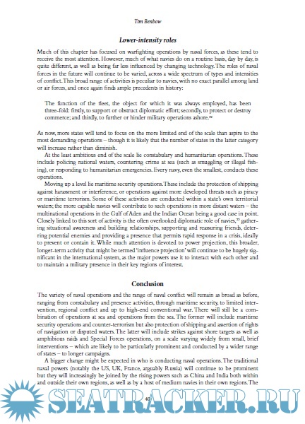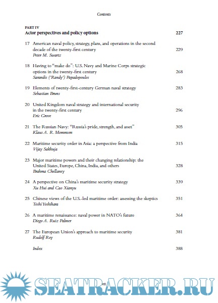 The document is covering the naval security aspects in different regions of the planet, including the piracy-prone area of the East Africa. In addition, the book outlines the policy challenges that commonly arise as a result of the maritime terrorism, international organized crime, etc. The authors have analyzed all consequences posed by the maritime security of today’s world, paying all due attention to the naval strategy.