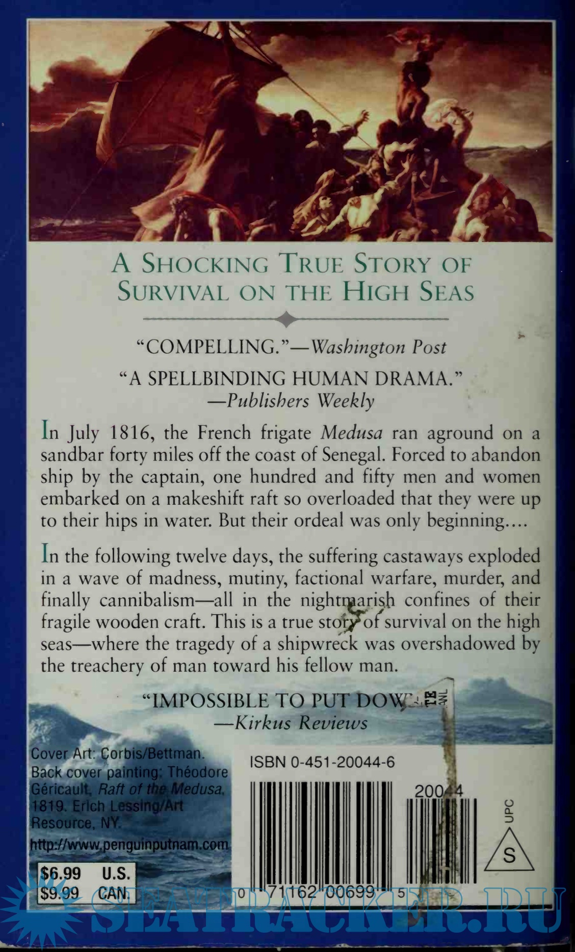 Description: In horrifying detail, this book tells the gruesome true story of the shipwreck of the French frigate "Medusa" off the coast of Senegal in 1816. Forced to abandon ship, 150 men and women embarked on an overloaded makeshift raft. After 12 days of riots, mutiny, murder, and cannibalism, only 15 survived. Back in print after 20 years, this book was originally published as "Death Raft".