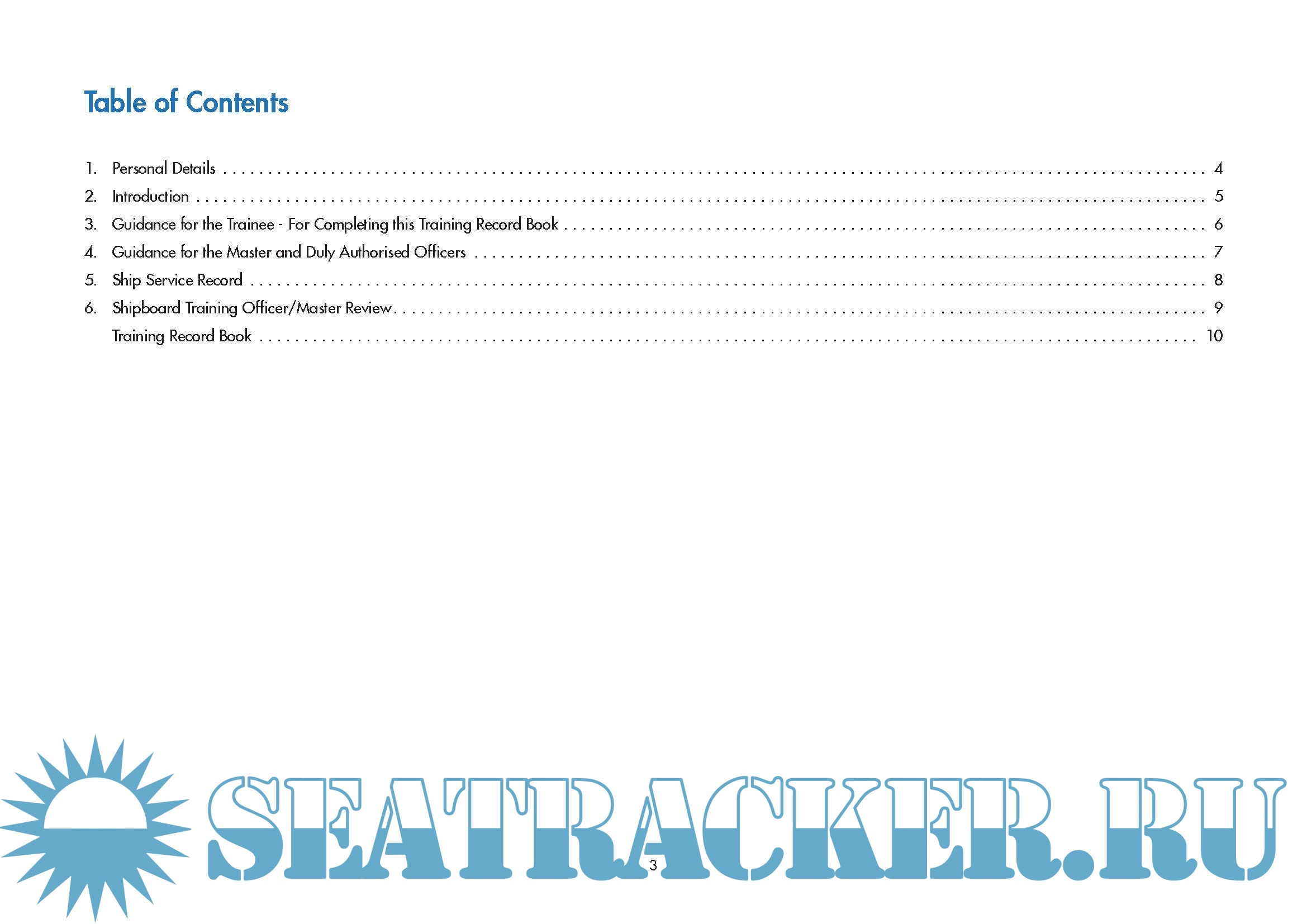 The book provides space to record details of the ship(s) on which sea service is being undertaken and its trading itinerary during the qualifying period. It lists the training and tasks to be undertaken and there is provision for the Master and supervisor to sign the book to confirm satisfactory completion. The tasks are grouped under broad areas of activity and include: