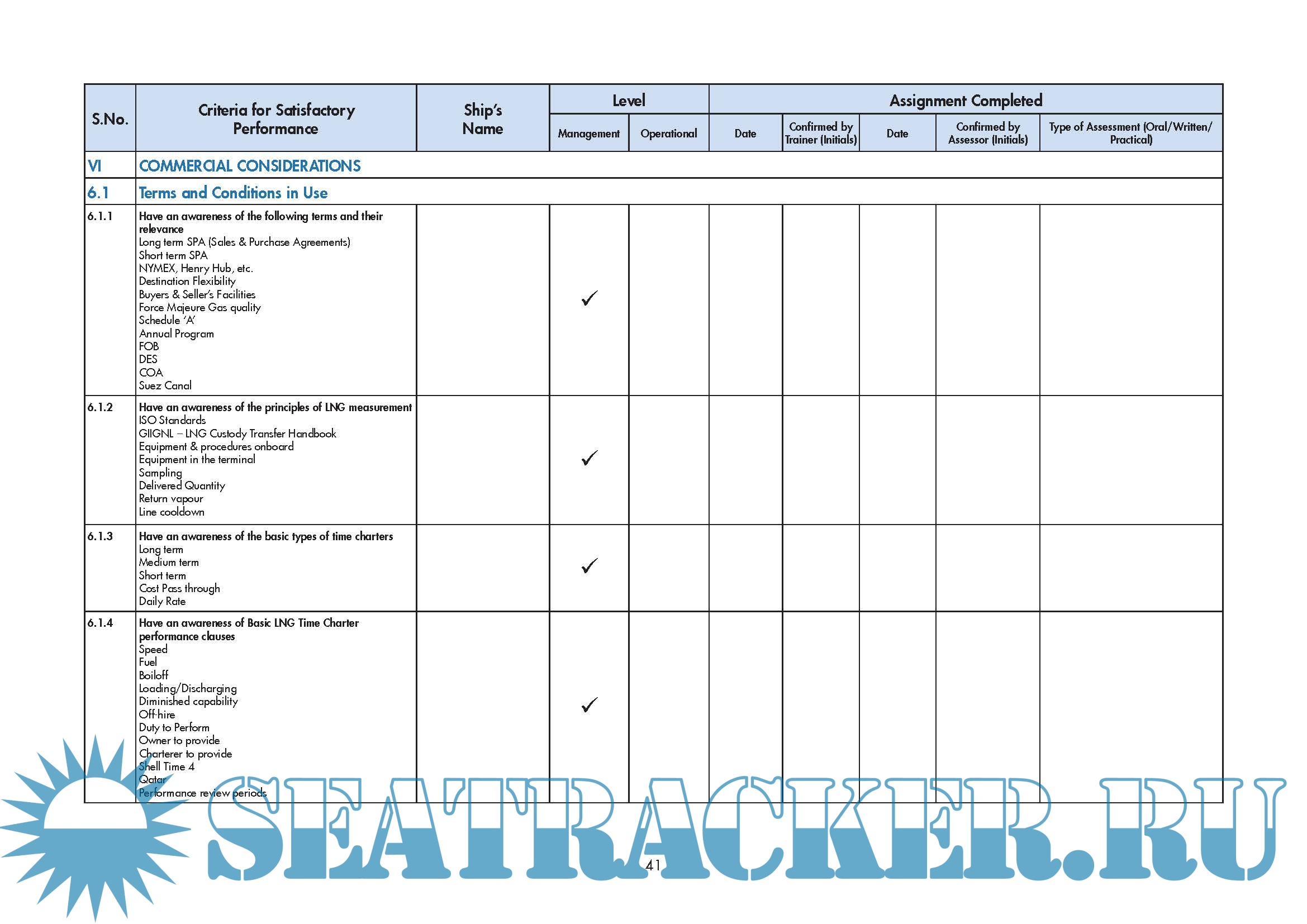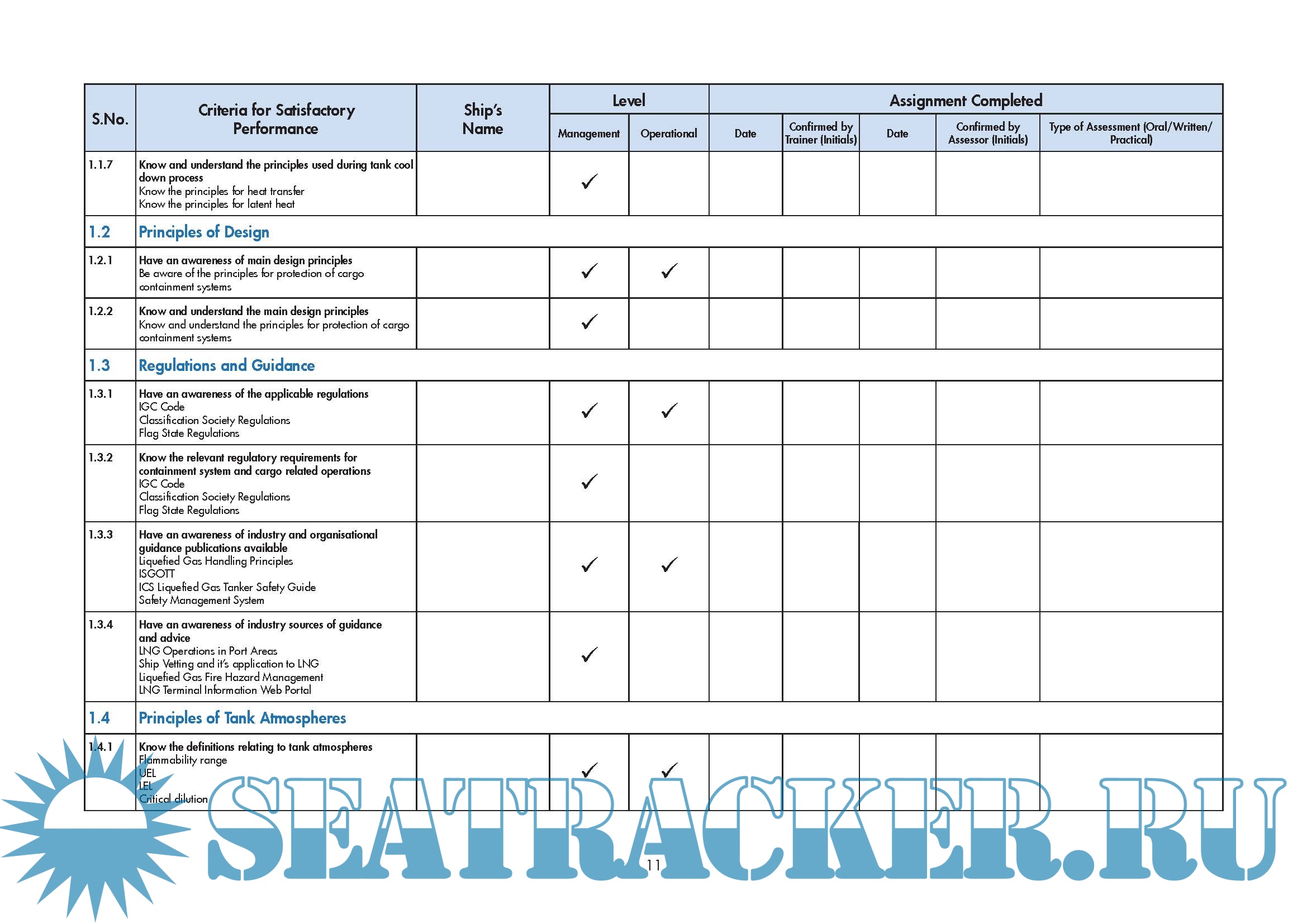 Description: This record book covers the practical operation of, and knowledge behind, the safe carriage of LNG, with emphasis on hands-on experience. It has been developed to reduce the regulatory sea service requirement for endorsement/certification from three months to one month (i.e. 30 days), provided that this period is served in a supernumerary capacity.