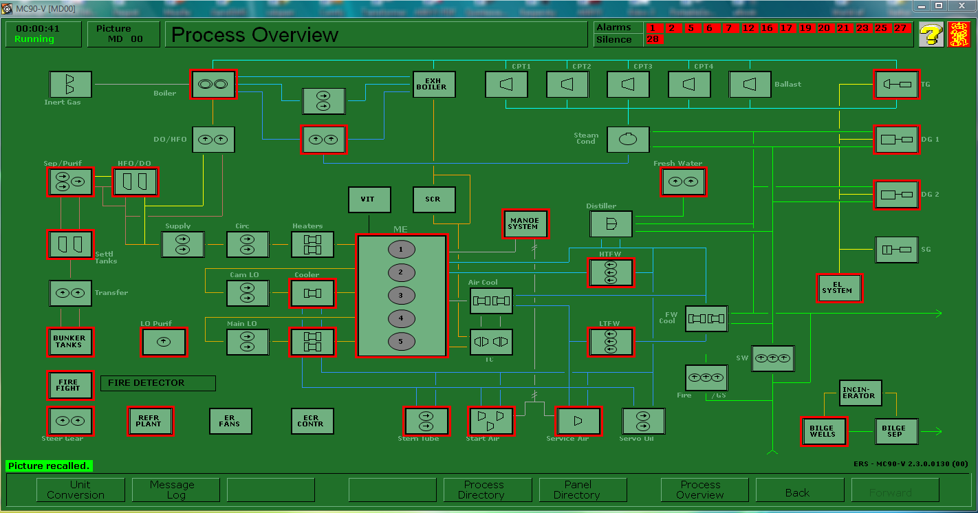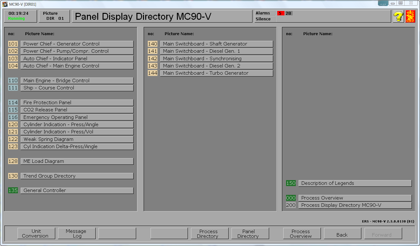Description: The ERS-L11 MAN B&W 5L90MC–VLCC simulates a very large crude carrier with a MAN B&W slow speed turbo charged diesel engine as propulsion unit modelled with fixed and controllable propeller.
