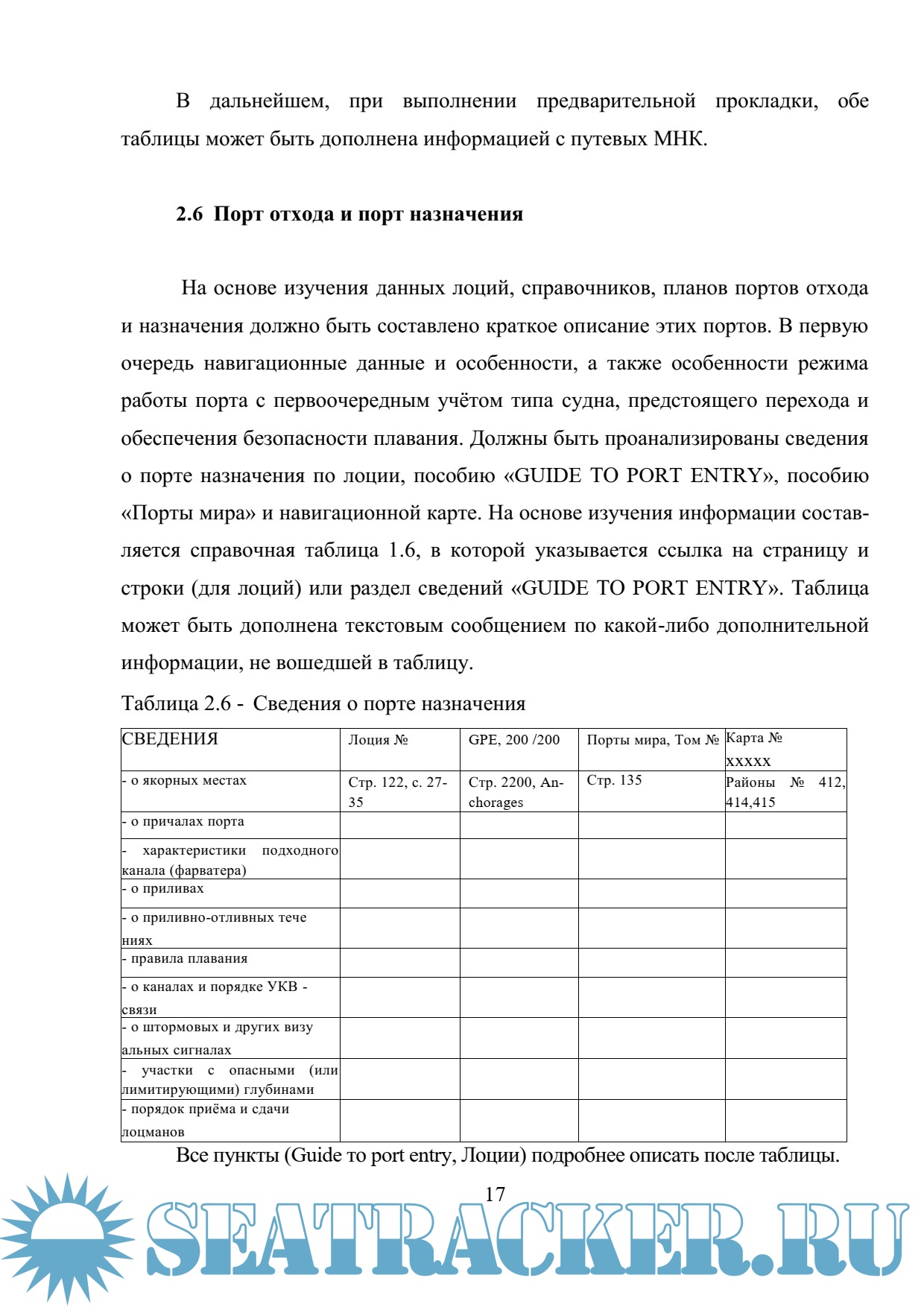 Описание: Курсовая работа по дисциплине «Навигация и лоция» согласно учебному плану специальности 26.05.05 «Судовождение» выполняется на заключительном этапе изучения дисциплины и призвана углубить и закрепить у курсантов теоретические и практические знания и навыки, а также научить их применять эти знания при решении конкретных задач по навигационной проработке рейса морского судна, овладеть элементами научно-исследовательской и самостоятельной творческой работы с применением средств вычислительной техники.