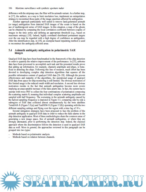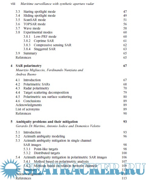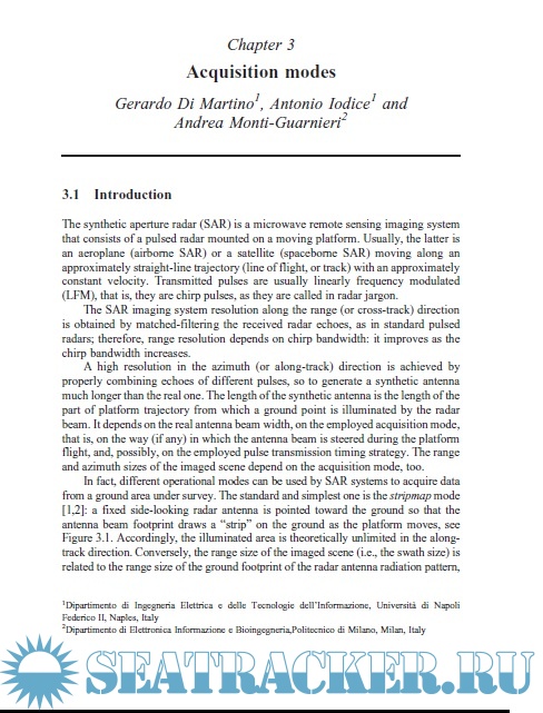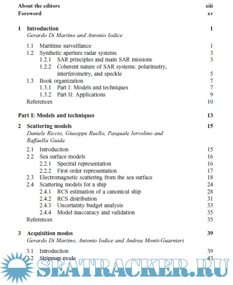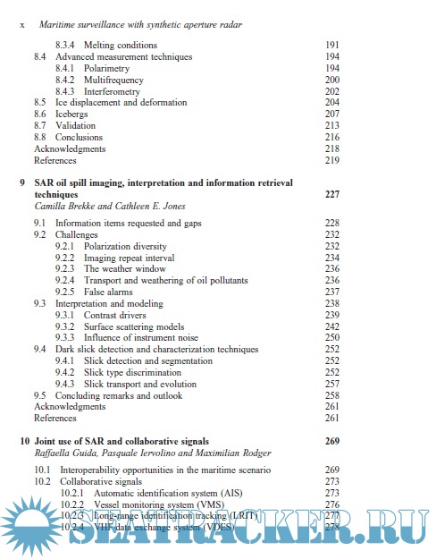Description: This book covers the use of SAR for maritime surveillance applications. It provides a comprehensive source of material on the subject, divided into two parts. The first part deals with models and techniques, while the second part is devoted to maritime surveillance applications. Each chapter covers the basic principles, a critical review of the current technology, techniques and applications, and the latest developments in the field.