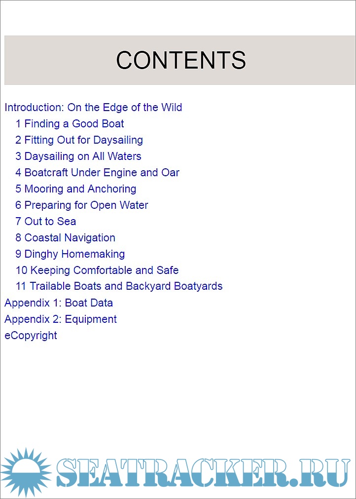This guide is aimed to all aspiring or already-enthusiastic dinghy cruisers. It shows how to get started and how to expand adventure's horizons. The information and advice is interwoven with interesting stories of the author's adventures afloat, from secluded rivers and coastlines to voyages to remote islands. Topics covers how to find the right boat, fitting out for daysailing, navigating under engine and oar, mooring and anchoring, preparing for open water, coastal navigation, how to set the dinghy comfortable and safe.