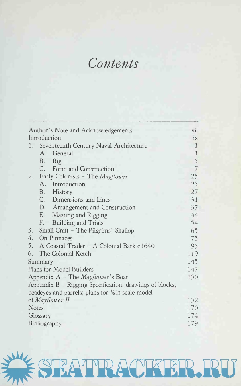 Year: 1983 Language: english Author: Baker W.A. Genre: History Publisher: Naval Institute Press ISBN: 0870218433 Format: PDF Quality: Scanned pages Pages count: 200 Description: Mayflower was an English ship that transported a group of English families known today as the Pilgrims from England to the New World in 1620. After a grueling 10 weeks at sea, the Mayflower, with 102 passengers and a crew of about 30, reached America, dropping anchor near the tip of Cape Cod, Massachusetts, on November 21 [O.S. November 11], 1620. There were 26 vessels bearing the name Mayflower in the Port Books of England during the reign of James I (1603–1625); it is not known why the name was so popular. The identity of Captain Jones's Mayflower is based on records from her home port, her tonnage (est. 180–200 tons), and the master's name in 1620 in order to avoid confusion with the many other Mayflower ships.[36] It is not known when and where Mayflower was built, although late records designate her as "of London". She was designated in the Port Books of 1609–11 as "of Harwich" in the county of Essex, coincidentally the birthplace of Mayflower master Christopher Jones about 1570.