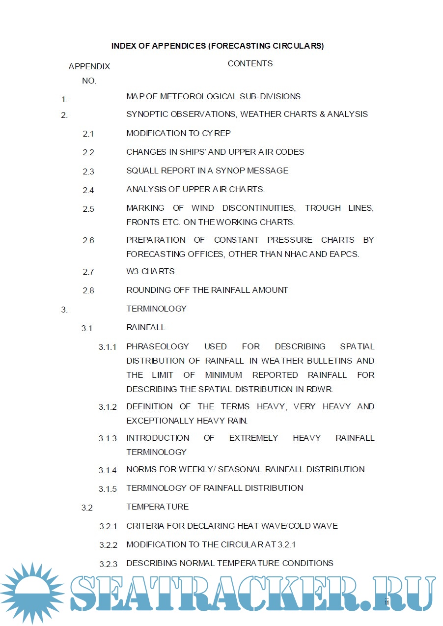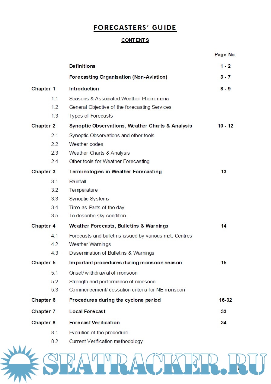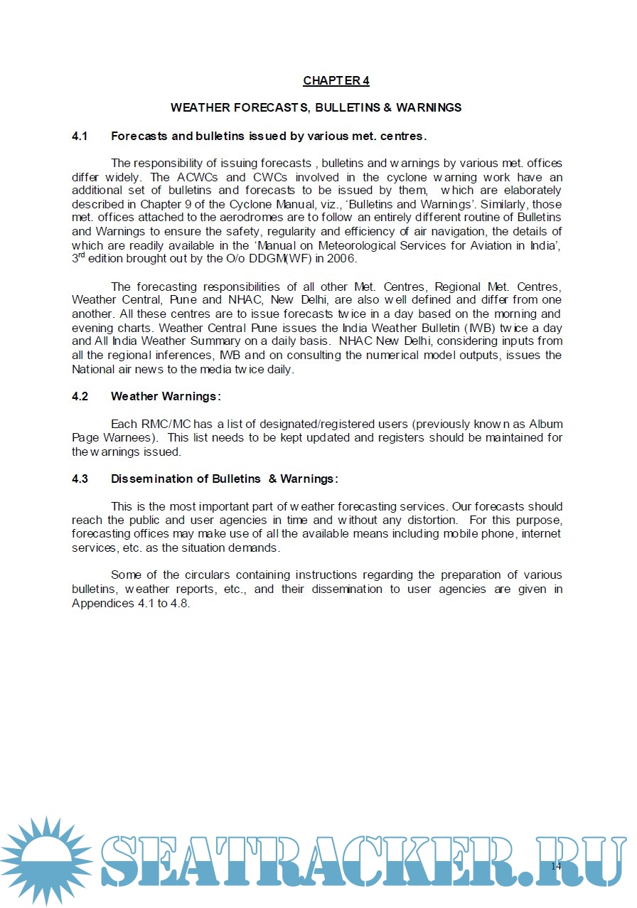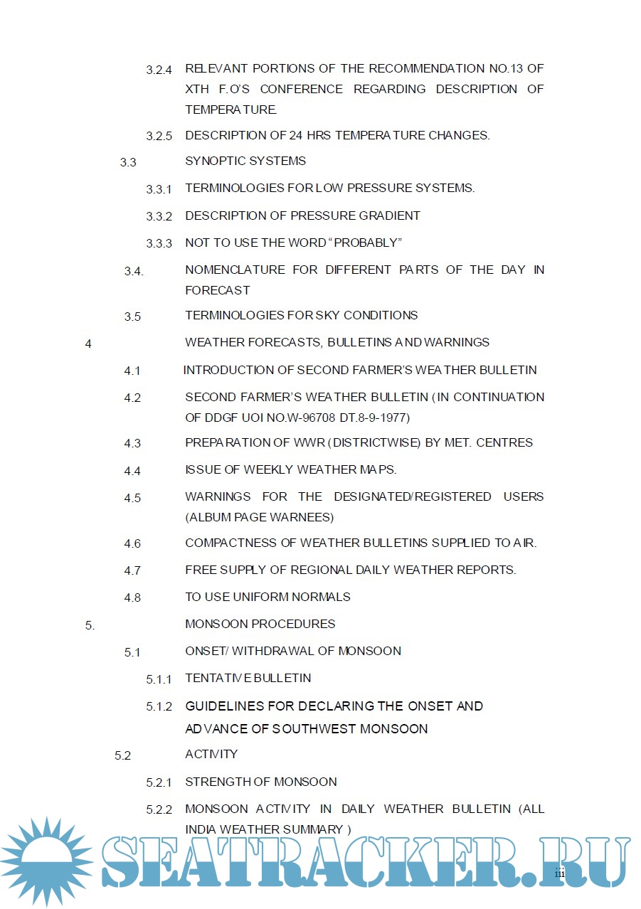 Year: 2008 Language: english Author: India Meteorological Department Genre: Handbook Publisher: India Meteorological Department Format: PDF Quality: eBook Pages count: 148 Description: Operational weather forecasting is one of the principal mandates of India Meteorological Department (IMD). In order to effectively accomplish this mission IMD, since its establishment, has been issuing a large number of instructions and technical regulations from time to time, as an aid to the forecasters. The basic purpose of such circulars is to maintain a specific standard and to bring about uniformity among all forecasting offices in their functioning. This publication is a compilation of forecasting circulars dealing with these instructions, which are relevant to the everyday meteorologist' work. It is aimed to serve as a ready reference for the field forecasters, therefore circulars are classified under sub-titles, and a comprehensive index is provided for the appendices.