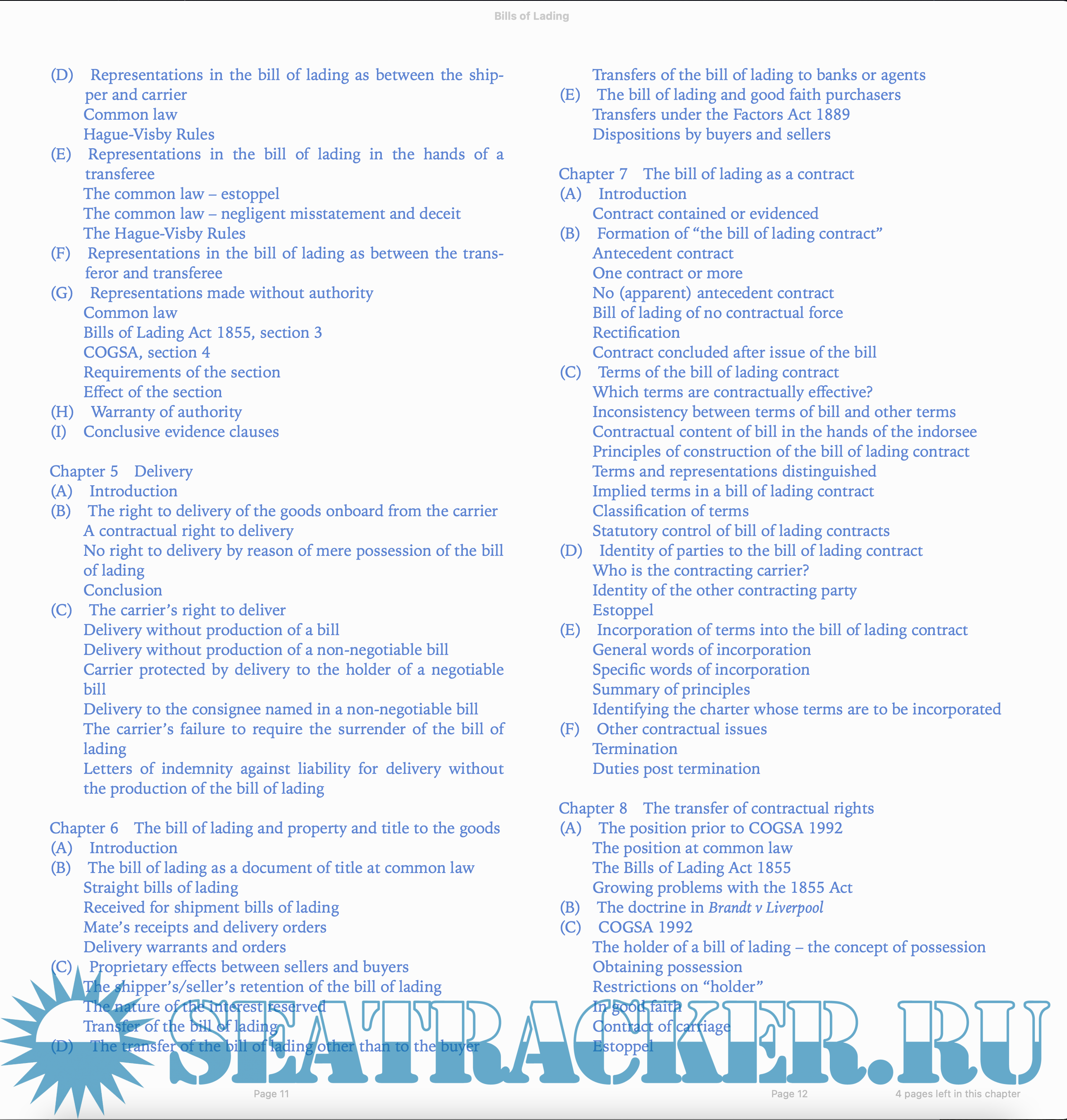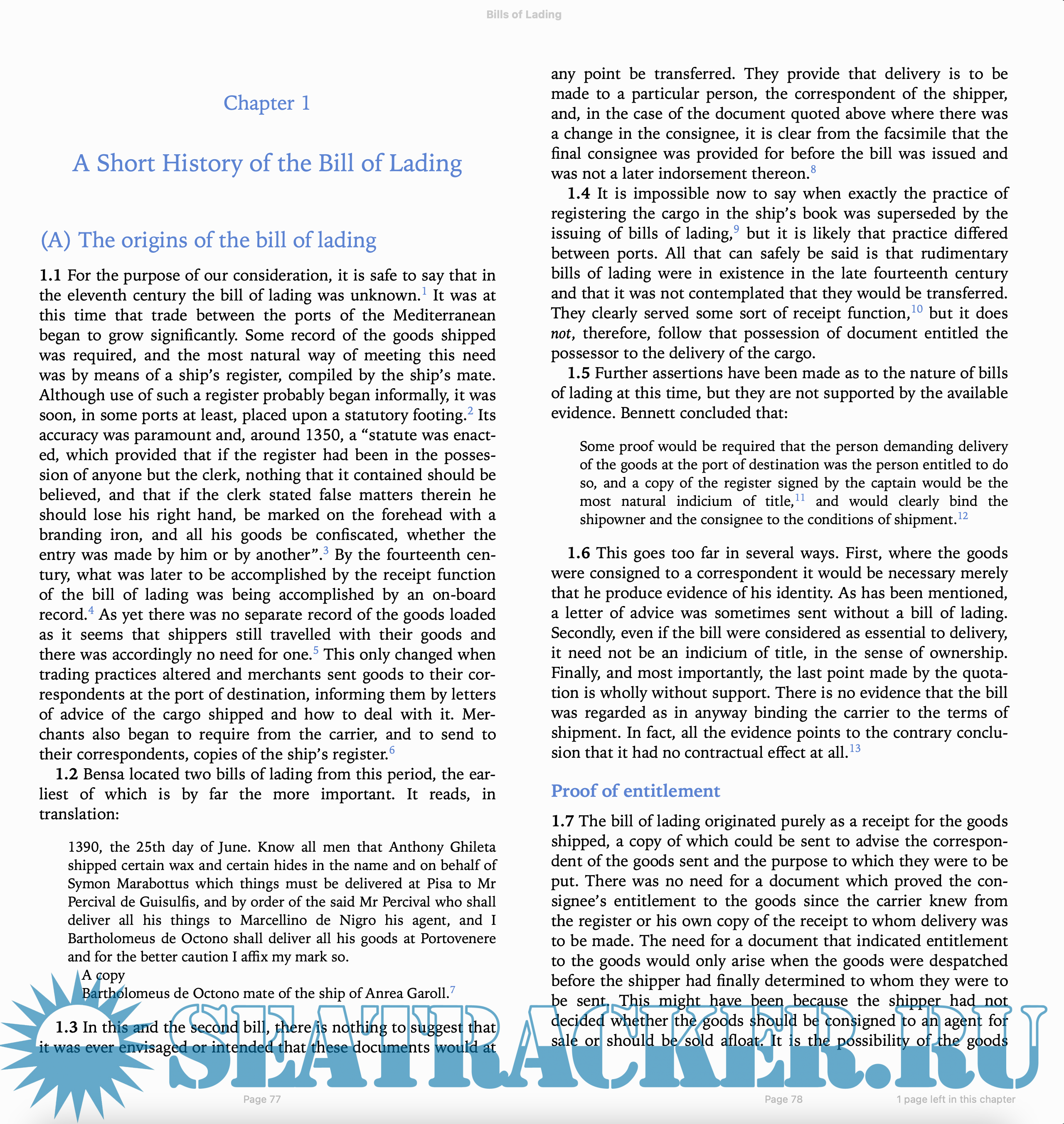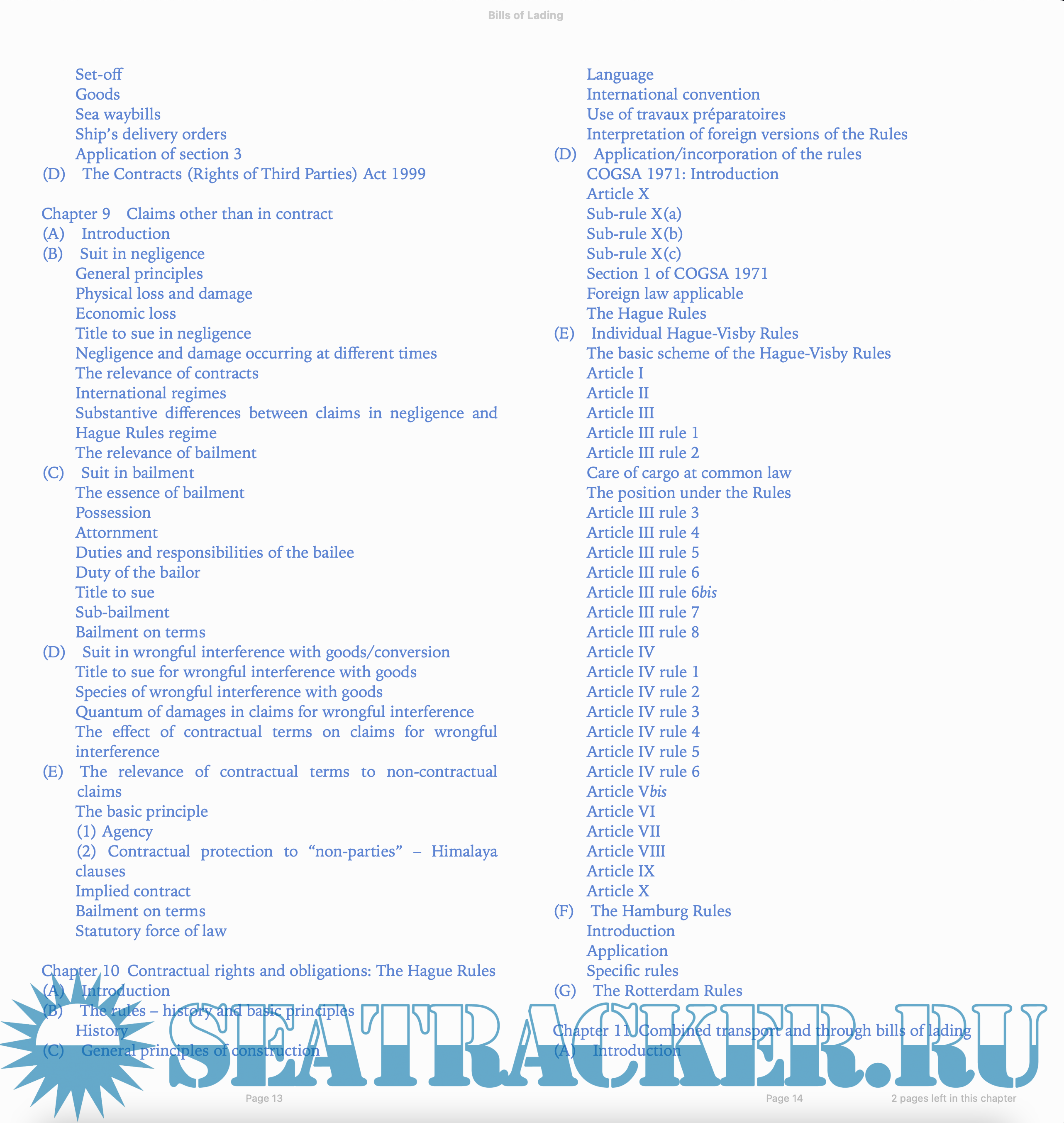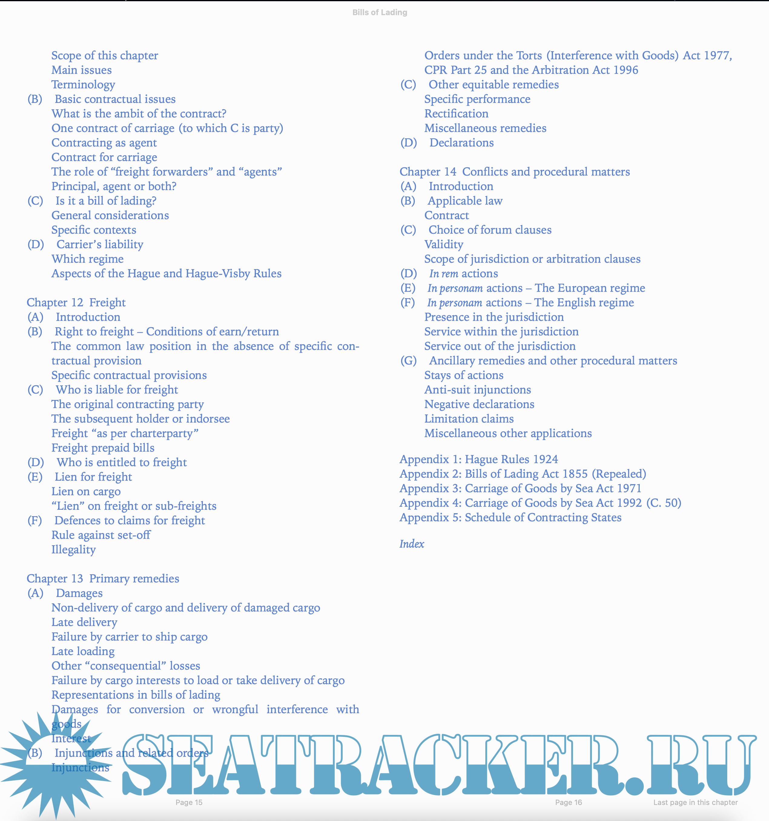 Year: 2016 Language: english Author: Aikens, Richard, Lord, Richard, Bools, Michael. Genre: Textbook Publisher: Informa Law Edition: 2nd ISBN: 978-1-315-75087-3 Format: EPUB Quality: eBook Pages count: 756 Description: “The common law relating to bills of lading has evolved over many centuries; and as in any such evolutionary process there have been periods of rapid change and periods of relative quiet. The nine years since the first edition of this book constitute a relatively undramatic, if busy period, with many decisions handed down but few likely to have had the maritime lawyer or shipowner choking over their cornflakes. A similar picture emerges on the regulatory and statutory front. With only one short piece of English legislation (the 1855 Bills of Lading Act) prior to COGSA 1924, then a rash of two statutes within only about 20 years of each other (COGSAs 1971 and 1992) it is unsurprising, even in an increasingly regulated world, that nothing of real practical importance in terms of substantive law has emerged since. We stress the word “practical” because of course it is hard to overestimate the potential impact and importance of the Rotterdam Rules. Rightly or wrongly we have taken the view that they will have no practical impact on the work of the English lawyer during any reasonably foreseeable lifetime of this edition, even allowing for the customary authorial breaches of the[…]”