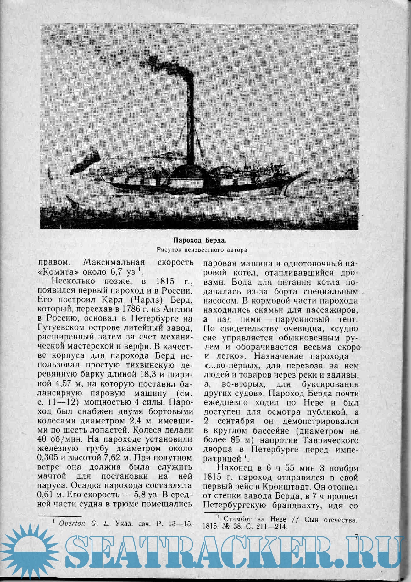 Описание: На основе архивных документов изложена история создания первых пароходов и организации пароходных сообщений на юге России в первой половине XIX в. Приведены подробные данные по черноморским пароходам прошлого столетия, рассказано о кораблестроителях, их создавших. Рассмотрены оригинальные конструктивные решения, предложенные ими на рубеже перехода от парусного флота к паровому. Для широкого круга судостроителей и всех, интересующихся историей отечественного судостроения и флота.