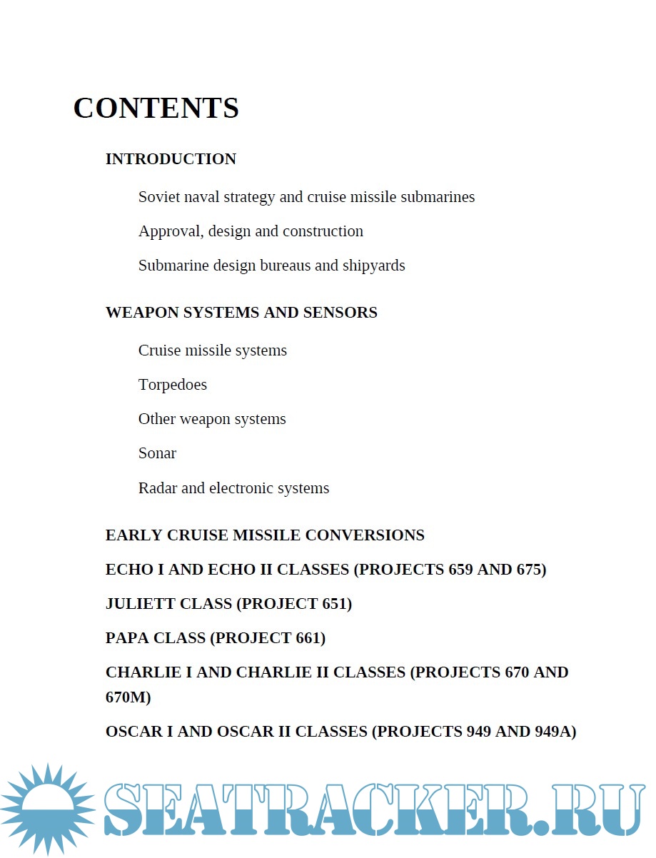 Year: 2018 Language: english Author: Edward Hampshire Genre: History Publisher: Osprey Publishing ISBN: 9781472825018 Format: PDF Quality: eBook Pages count: 95 Description: This book fully illustrates one of the most formidable weapons of the Cold War, the cruise missile submarines. They were initially designed to strike targets on the eastern coast of the United States by nuclear-tipped cruise missiles designed. However, By the late 1960s, submarine-launched ballistic missiles made the nuclear land-attack mission unnecessary, so existing submarines were converted and armed with antiship cruise missiles designed to destroy US super-carriers and other important naval targets. Topics cover the Soviet naval strategy on submarines, from the modified Whiskey to the Oscar II and Yankee classes, and the develop of weapons systems and sensors.