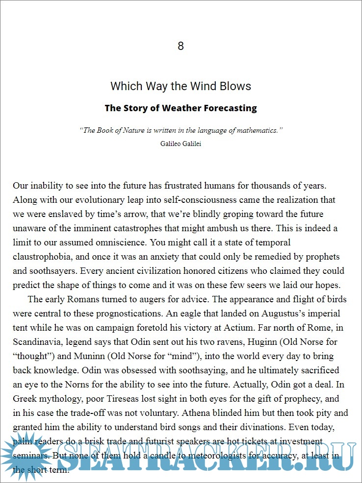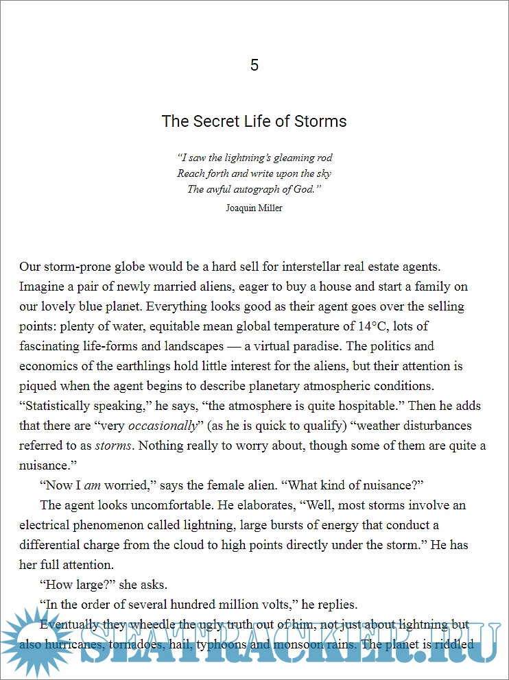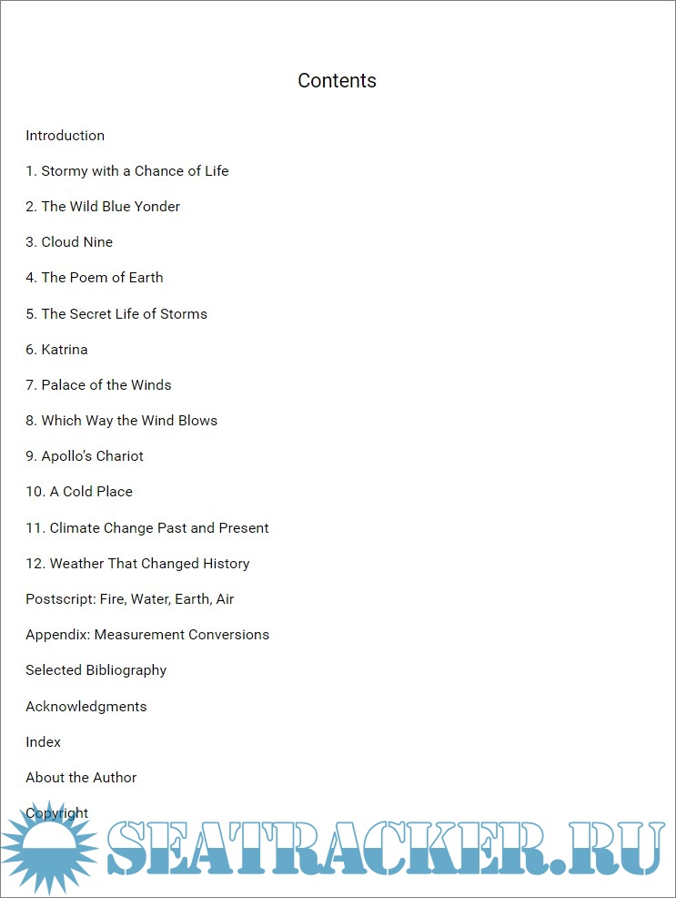 Year: 2018 Language: english Author: Christopher Dewdney Genre: Other Publisher: ECW Press ISBN: 978-1-77305-223-6 Format: EPUB Quality: eBook Pages count: 272 Description: We live at the bottom of an ocean of air that surrounds the earth. It could seem vaste, but it is a very thin layer: 99 percent of Earth's atmosphere is contained within 18 miles. It means that if the Earth is shrinked to the size of a basketball our atmosphere would be as thick as a paper leaf. All meteorology starts and ends here. With a fascinating story, the author guides the reader through the secrets of weather, tells about the invisible bonds that link the structure of clouds, the storms and the seasons. He details the history of weather forecasting and introduces us to the pioneers of science and observation, which they first began to understand the weather.