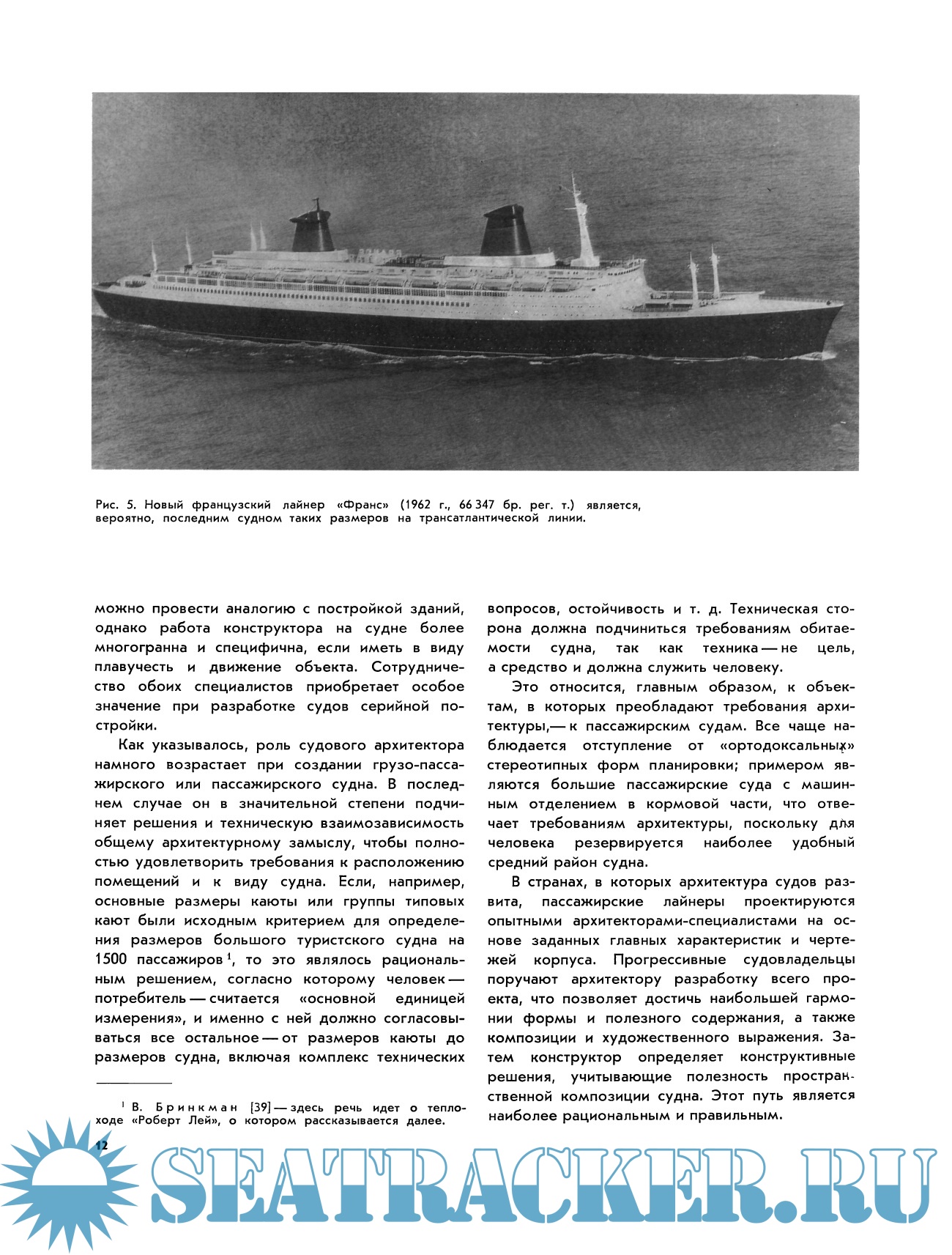 Книгу можно использовать и в качестве вспомогательного материала при изучении курса архитектурного проектирования судов, так как ее план вполне четок, а разнообразие приведенных сведений, хотя и требующих в ряде случаев уточнений, позволяет достаточно широко познакомиться с этой интересной областью судостроения.