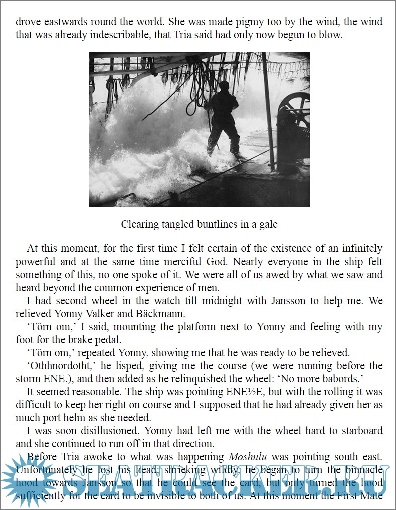 Year: 2014 Language: english Author: Eric Newby Genre: History Publisher: Harper Collins ISBN: 9780007597840 Format: EPUB Quality: eBook Pages count: 179 Description: In 1939, at the age of 18, Eric Newby boarded as an apprentice on the four-masted sailing ship Moshulu for the round trip from Europe to Australia and back, outwards by way of the Cape of Good Hope and round Cape Horn. Moshulu was the largest sailing ship still employed in the transportation of grain from Australia to Europe. Every year from 1921 to 1939, the vessels involved in the grain trade competed to find the shortest and fastest passage home, the so-called 'grain race'. The book is a first-hand account of the last 'grain race' of maritime history, and also a story of a voyage and a personal adventure. The author captured the difficulties, the adventure and the danger of life at sea, the storms, the quarrels and the friendship on board, but over all the book is the witness of the passing of the era of great sail ships.