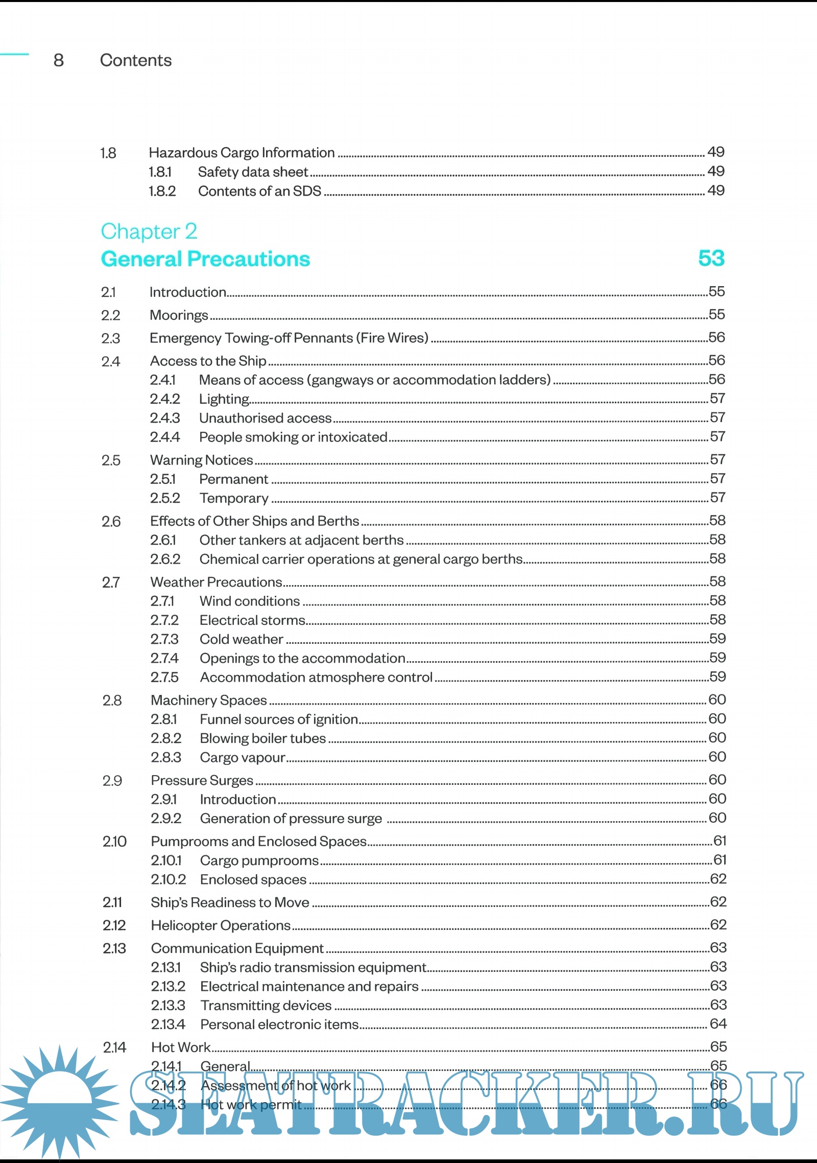 Year: 2021 Language: english Author: ICS Genre: Guide Publisher: Marisec Edition: 5 ISBN: 978-1-9162322-3-5 Format: PDF Quality: eBook Pages count: 302 Description: The ICS Tanker Safety Guide (Chemicals) is the standard reference work for chemical tankers. Now in its fifth edition, the Guide provides chemical tanker operators and crew with up-to-date best practice guidance for safe and pollution-free operations on ships regulated under MARPOL Annex II (Regulations for the Prevention of Pollution by Noxious Liquid Substances). This includes oil tankers operating in accordance with Annex II when they are carrying chemical cargoes. New in the fifth edition Expanded guidance on key safety issues including enclosed space entry, risk assessments and PPE. New and improved ship/shore safety checklists, to help ship and terminal crew complete important safety checks efficiently. Aligned with ISGOTT: International Safety Guide for Oil Tankers and Terminals, Sixth Edition. The Guide should be carried on all chemical tankers and should be readily accessible by anyone involved in the carriage of chemicals on ships, including ship operators, cargo interests, training institutes and terminal operators. Topics include