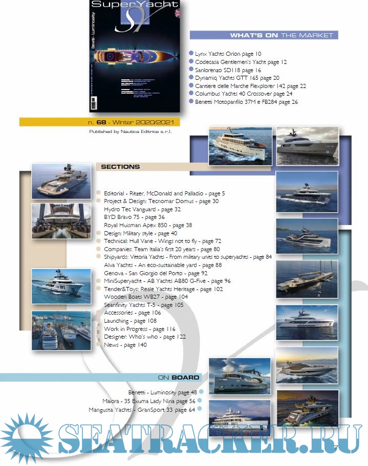 Year: 2021 Language: english Author: Superyacht International Genre: Periodical (magazine) Format: PDF Quality: eBook Pages count: 148 Description: Magazine on the nicest superyachts.