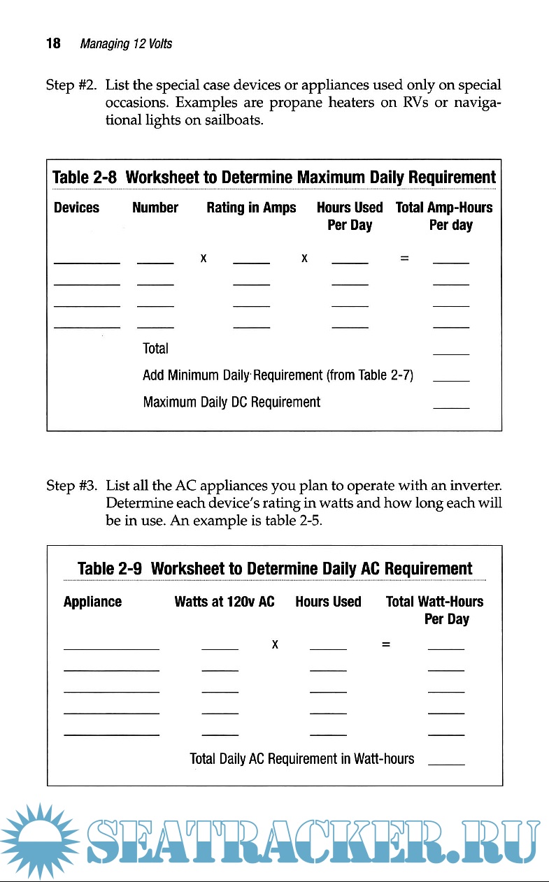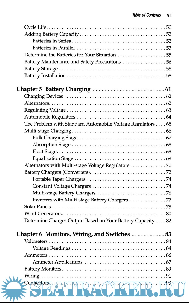 Year: 2002 Language: english Author: Harold Barre Genre: Manual Publisher: Summer Breeze Publishing Edition: 2nd ISBN: 9780964738621 Format: PDF Quality: eBook Pages count: 240 Description: This manual is about how to upgrade, operate and troubleshoot a 12-volt systems with emphasis on understanding what may be wrong with a system and how to improve it with a multi-stage charging system. The author, through diagrams and clear, concise writing, lead the reader to understand, operate, upgrade, repair the 12 V electrical system, how to change parts, calculate the amount of charge batteries contain and power consumption, and how to recharge them properly.