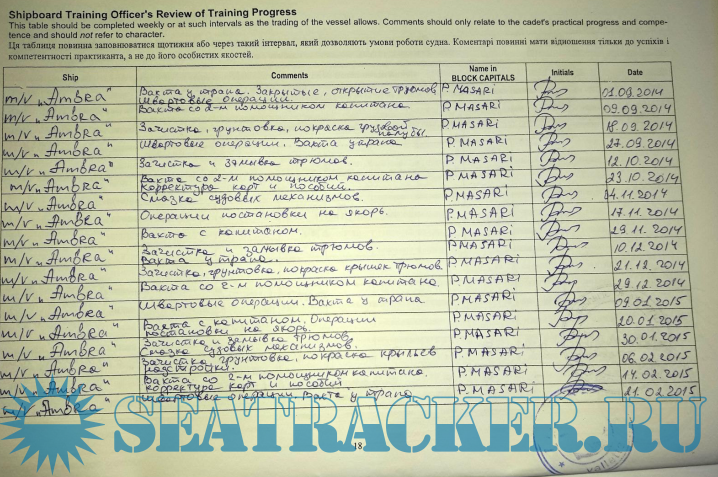 Заполнение Training record book для Кадетов (Штурманов) Вариант №2