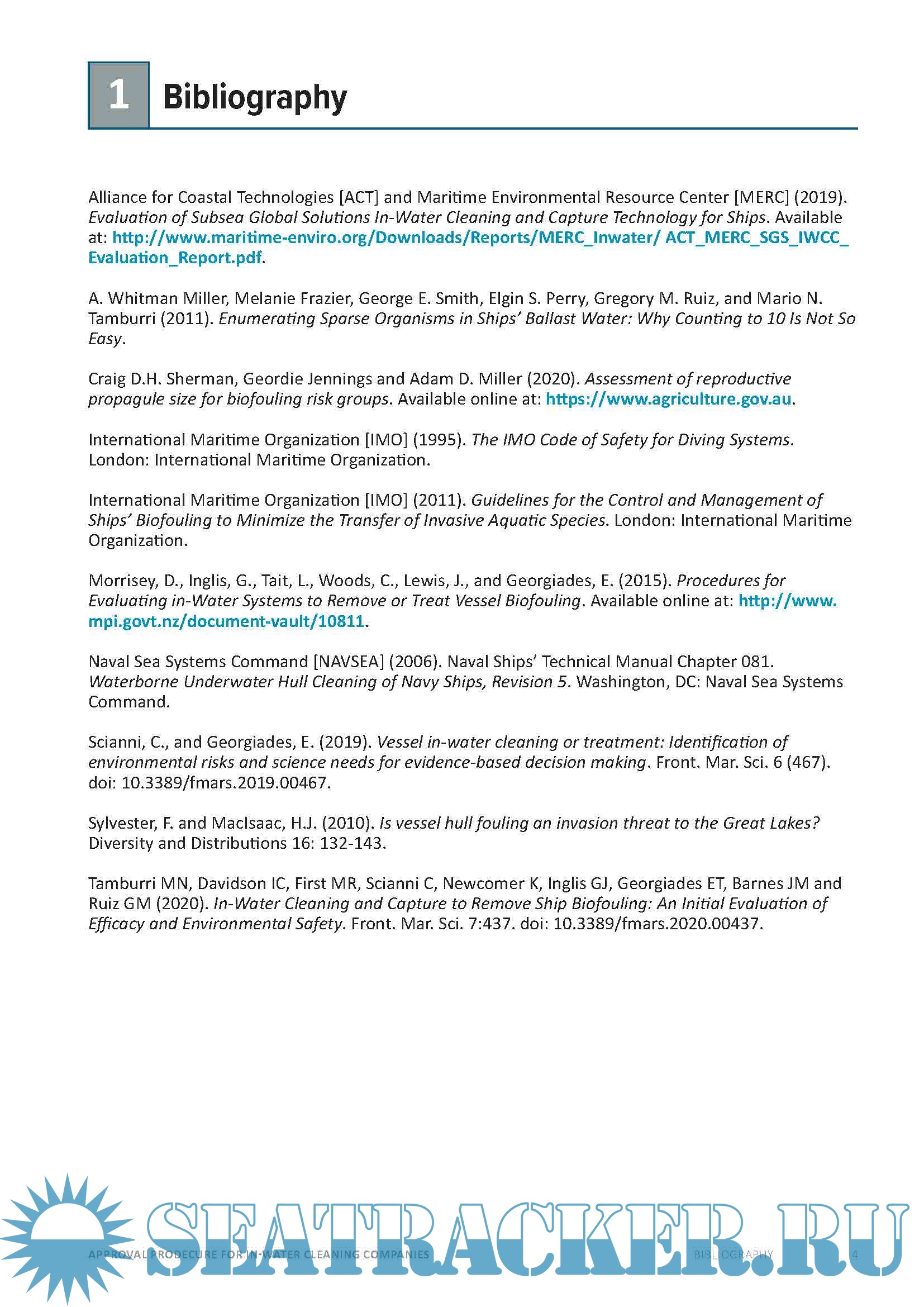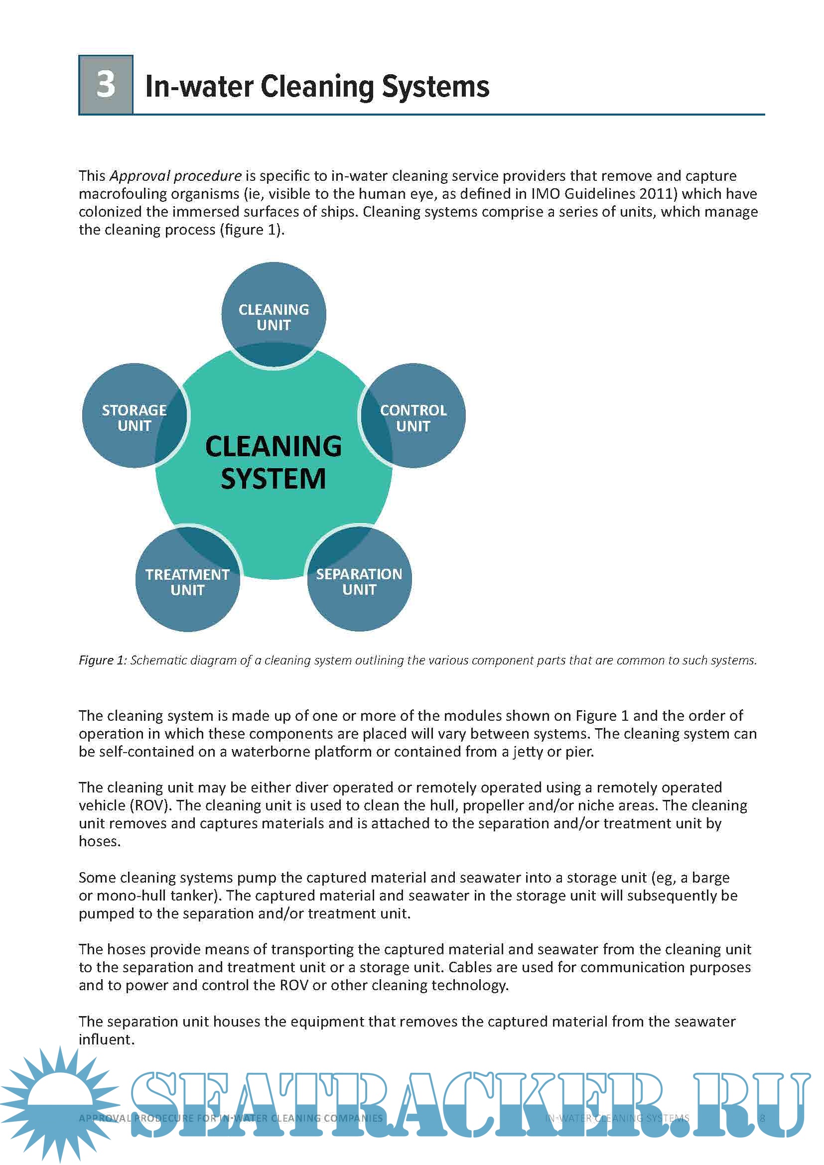 Description: This approval procedure sets minimum requirements for approval of in-water cleaning companies that remove and capture macrofouling organisms (i.e., visible to the human eye, as defined in IMO Guidelines 2011) which have colonised the immersed surfaces of ships.