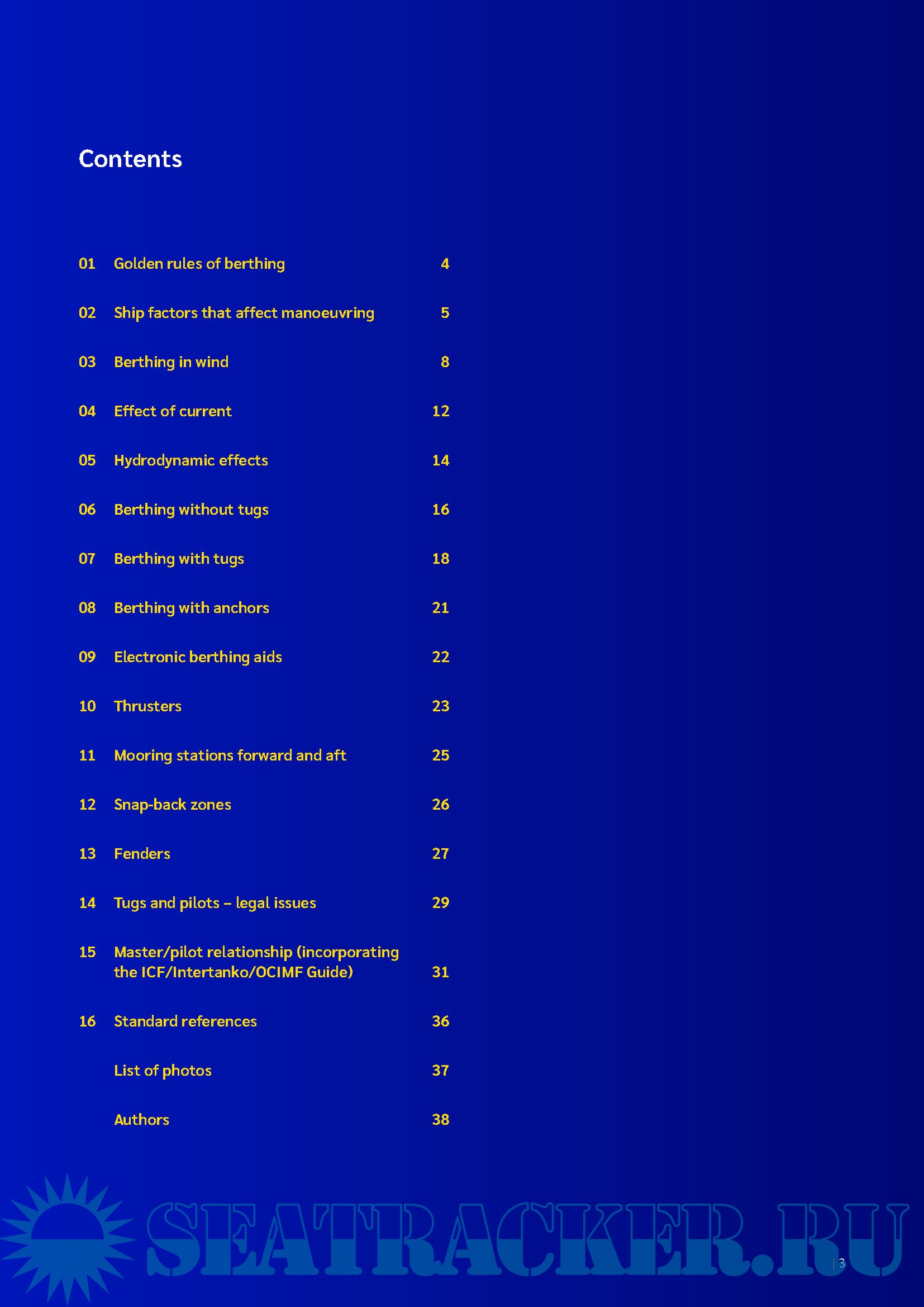content on berthing aids, snap-back zones and bow thrusters. The guide also provides guidance on electronic berthing aids and detailed