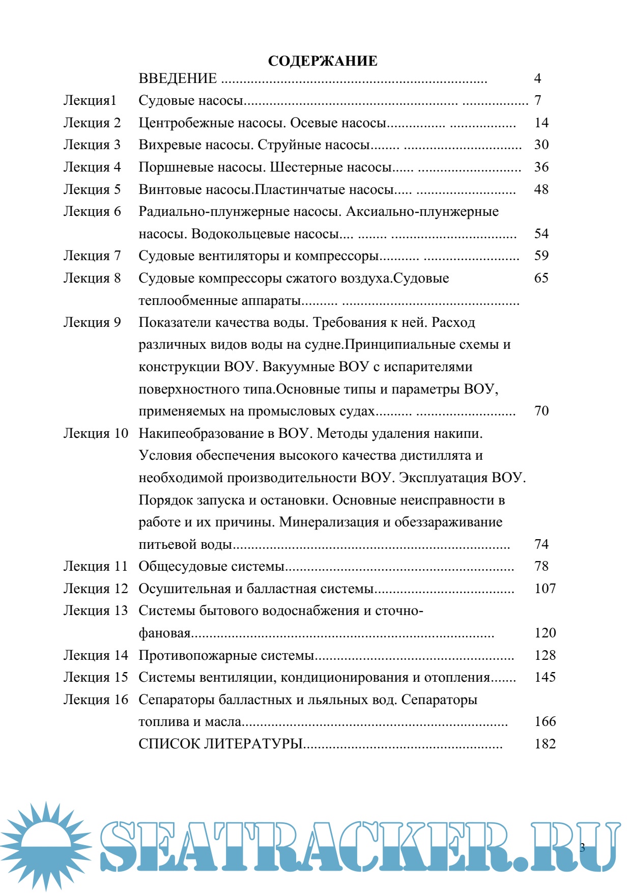 Год выпуска: 2021 Язык: русский Автор: Попов В.В. Жанр: Курс лекций Издательство: Керченский государственный морской технологический университет Формат: PDF Качество: Изначально компьютерное (eBook) Количество страниц: 182 Описание: Введение. Судовые насосы. Центробежные насосы. Осевые насосы. Вихревые насосы. Струйные насосы. Поршневые насосы. Шестерные насосы. Винтовые насосы. Пластинчатые насосы. Радиально-плунжерные насосы. Аксиально-плунжерные насосы. Водокольцевые насосы. Судовые вентиляторы и компрессоры. Судовые компрессоры сжатого воздуха. Судовые теплообменные аппараты. Показатели качества воды. Требования к ней. Расход различных видов воды на судне. Принципиальные схемы и конструкции ВОУ. Вакуумные ВОУ с испарителями поверхностного типа. Основные типы и параметры ВОУ, применяемых на промысловых судах. Накипеобразование в ВОУ. Методы удаления накипи. Условия обеспечения высокого качества дистиллята и необходимой производительности ВОУ. Эксплуатация ВОУ. Порядок запуска и остановки. Основные неисправности в работе и их причины. Минерализация и обеззараживание питьевой воды. Общесудовые системы. Осушительная и балластная системы. Системы бытового водоснабжения и сточнофановая. Противопожарные системы. Системы вентиляции, кондиционирования и отопления. Сепараторы балластных и льяльных вод. Сепараторы топлива и масла. Список литературы.