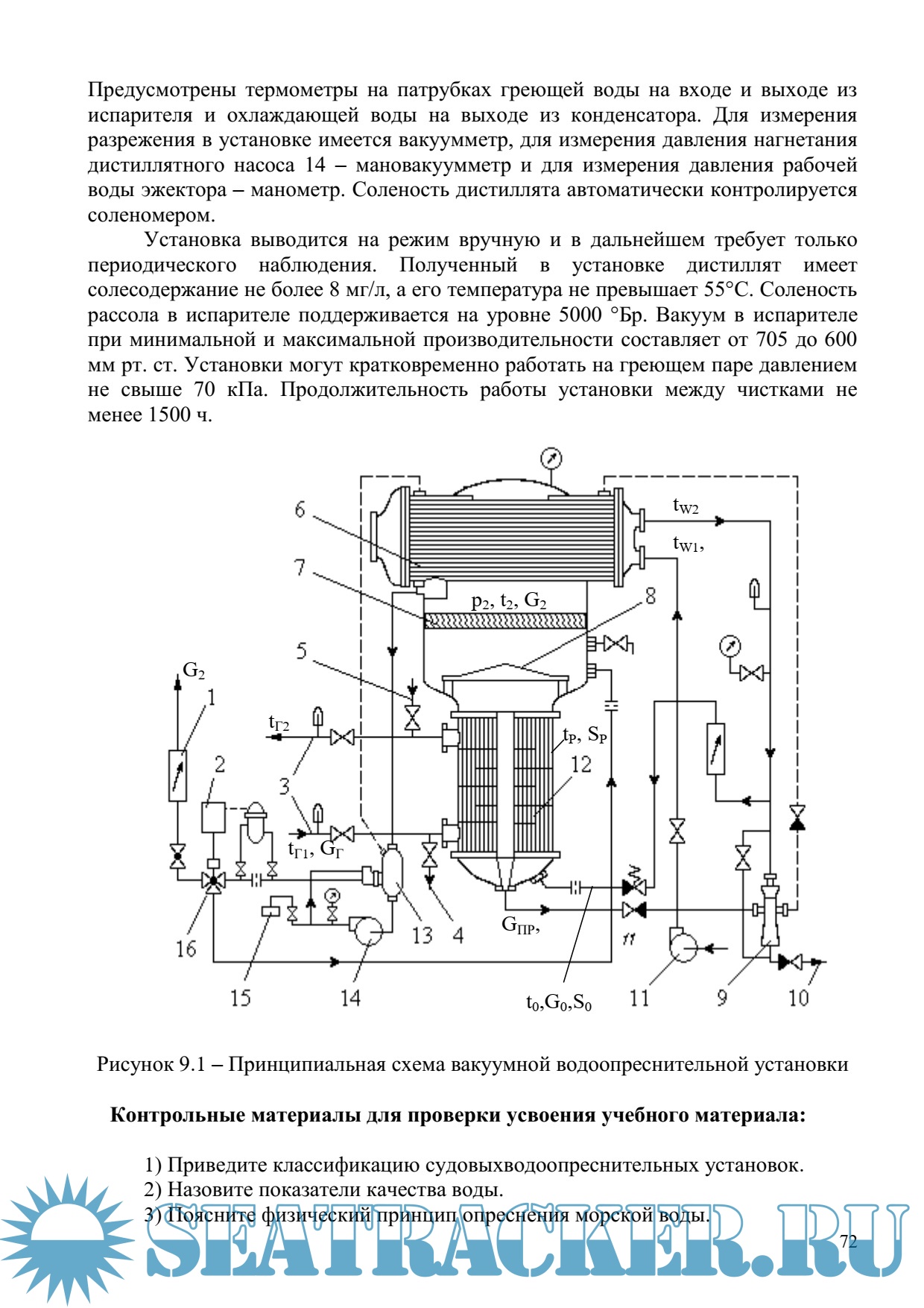 Показатели качества воды. Требования к ней. Расход различных видов воды на судне. Принципиальные схемы и конструкции ВОУ. Вакуумные ВОУ с испарителями поверхностного типа. Основные типы и параметры ВОУ, применяемых на промысловых судах.
