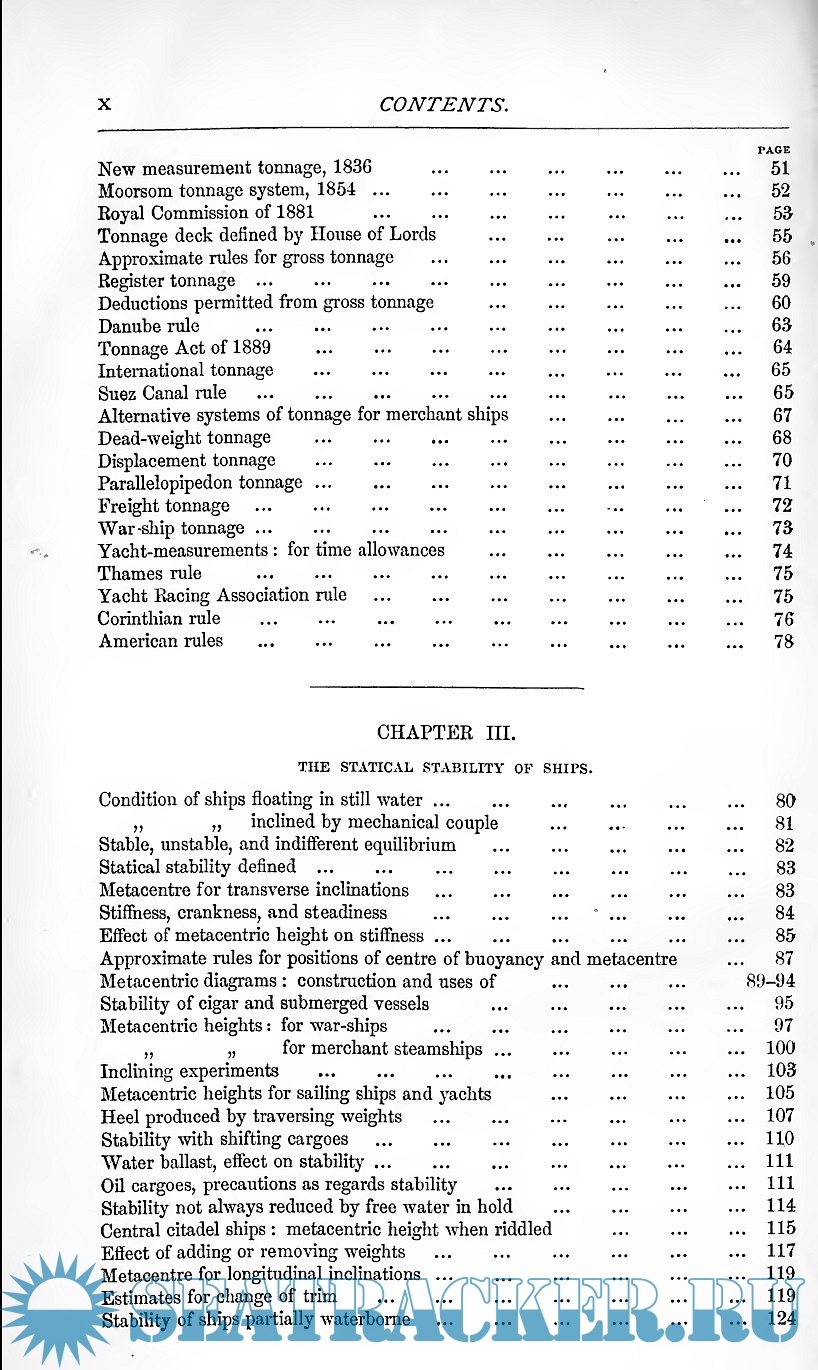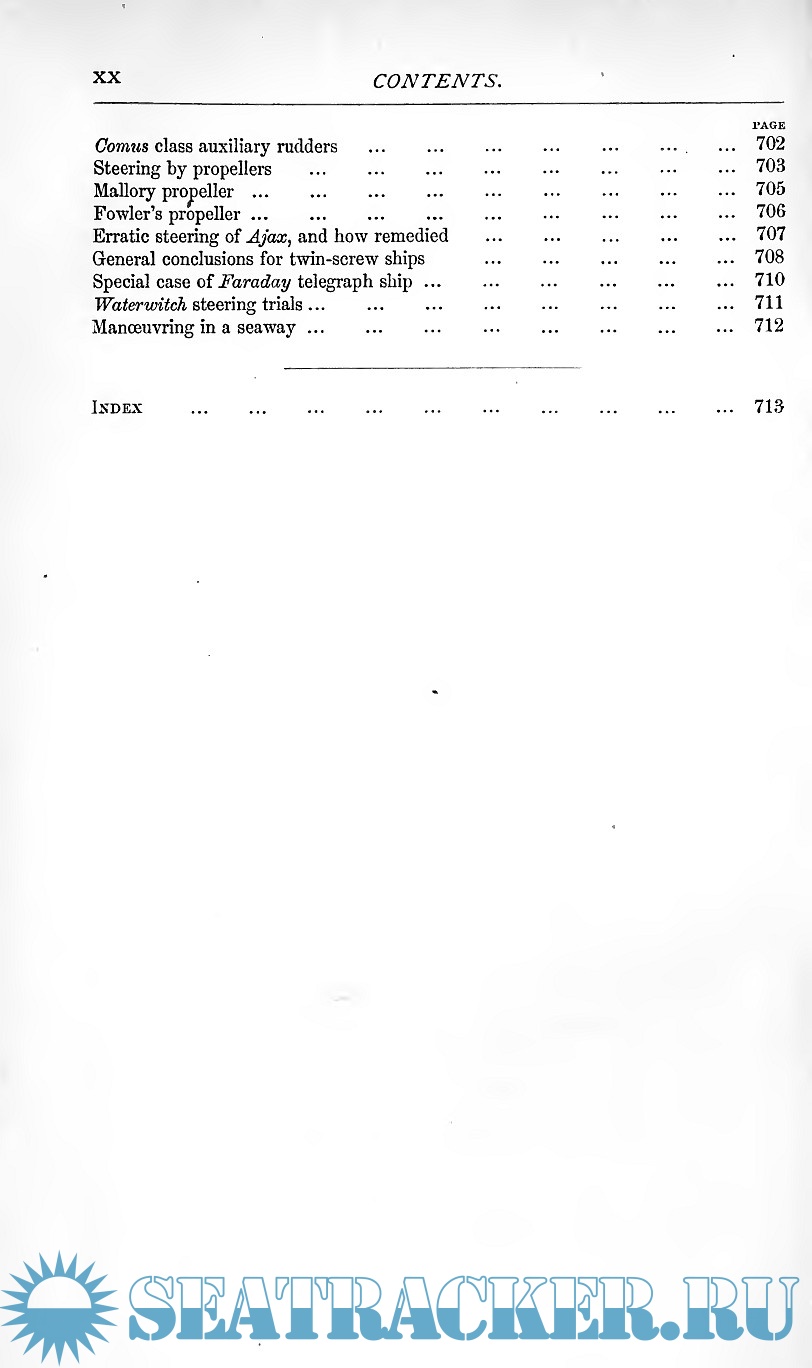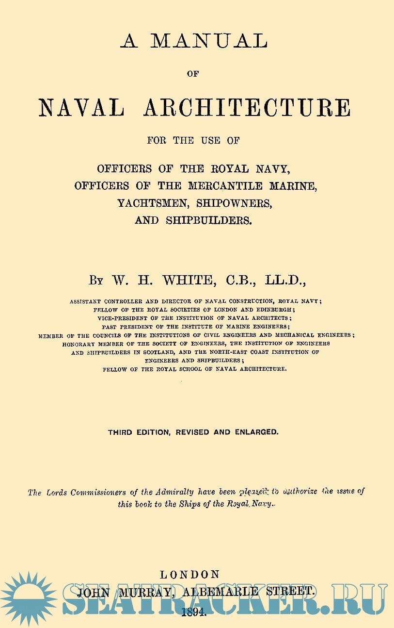 Description: This manual is the 3rd edition of a bestseller of the time, first published in 1877. Originally aimed to officers studying in the Royal Naval College, it later also became a classic for officers of the Mercantile Marine, yachtsmen, shipowners and shipbuilders, due to an innovative approach and a clear explanation that has made it popular to sailors and seamen, as well as to naval architects or shipbuilders. In short this book was intended to supply that want, and to enable persons, outside the profession of the naval architect, to obtain a general acquaintance with the principles of the construction, propulsion, and behaviour of ships. Topics cover the basics of displacement, buoyancy and stability of a ship, oscillation, motion at sea and wave theory, structure, resistance and seaworthiness, sail and steam propulsion, propellers and steering systems.