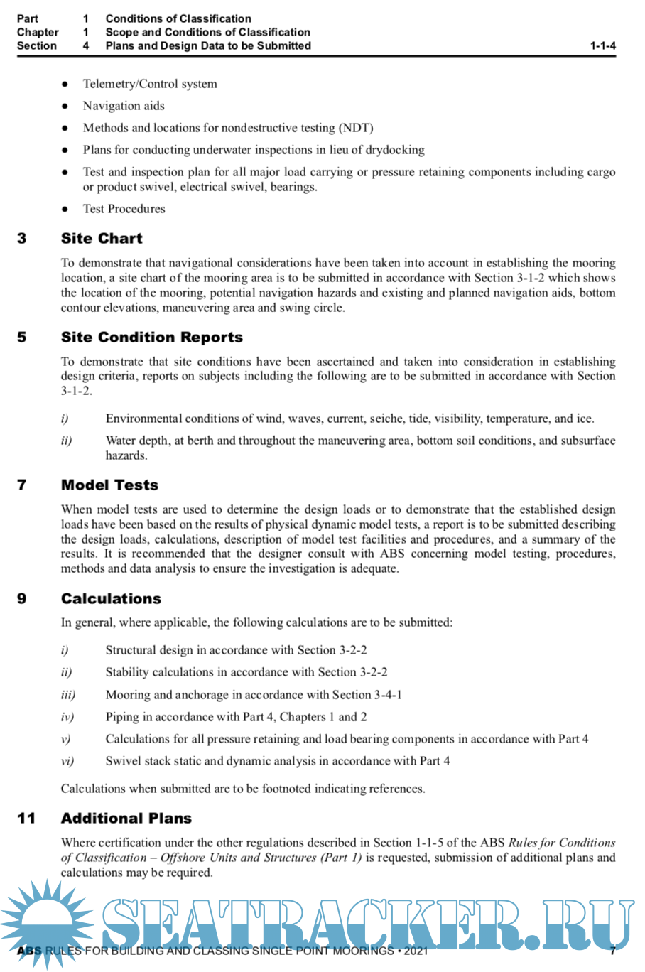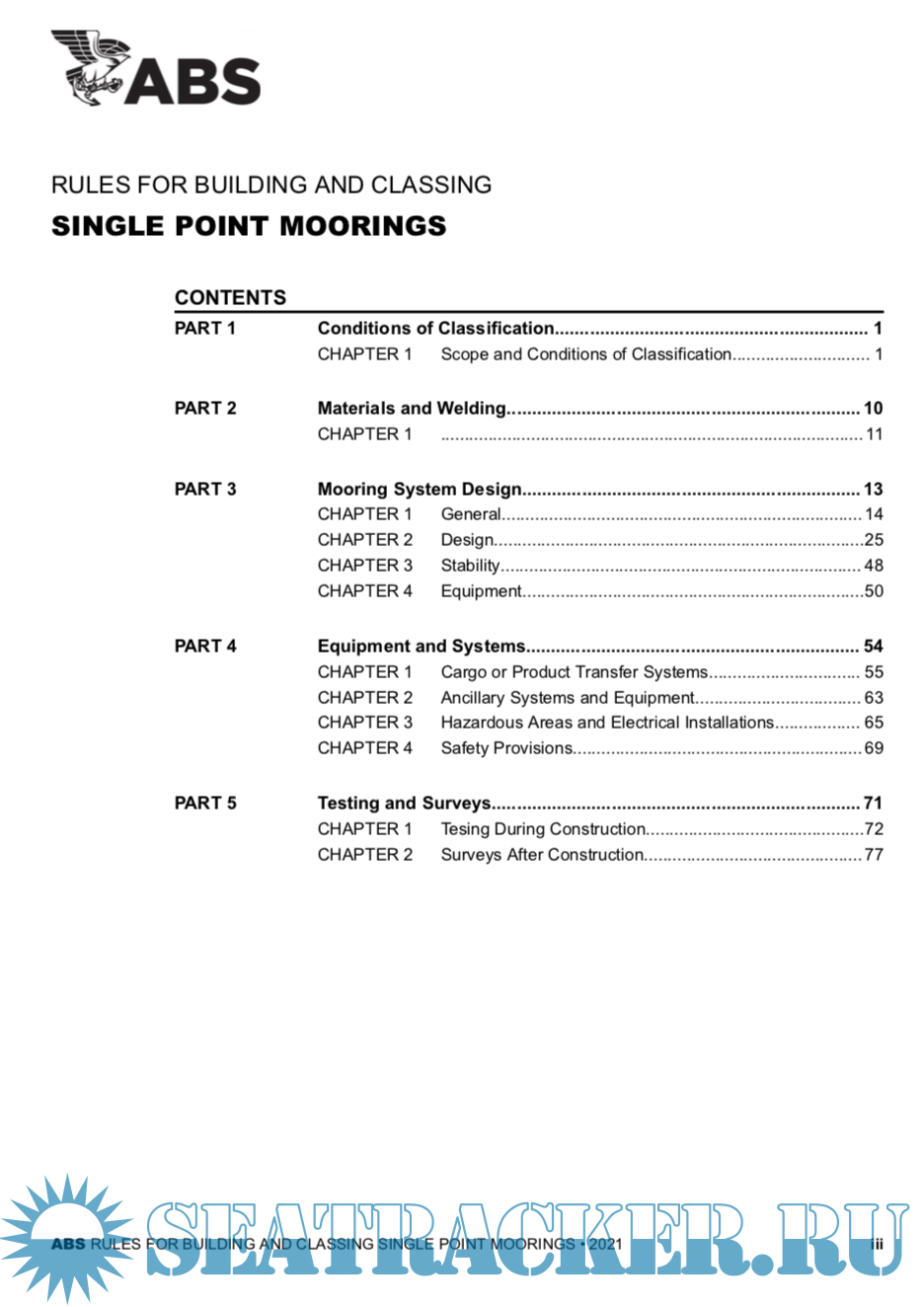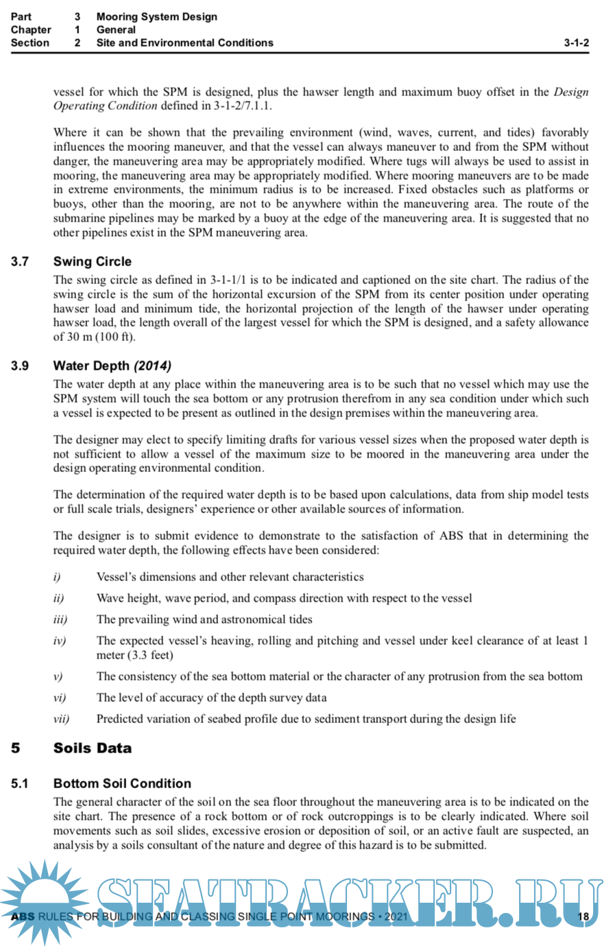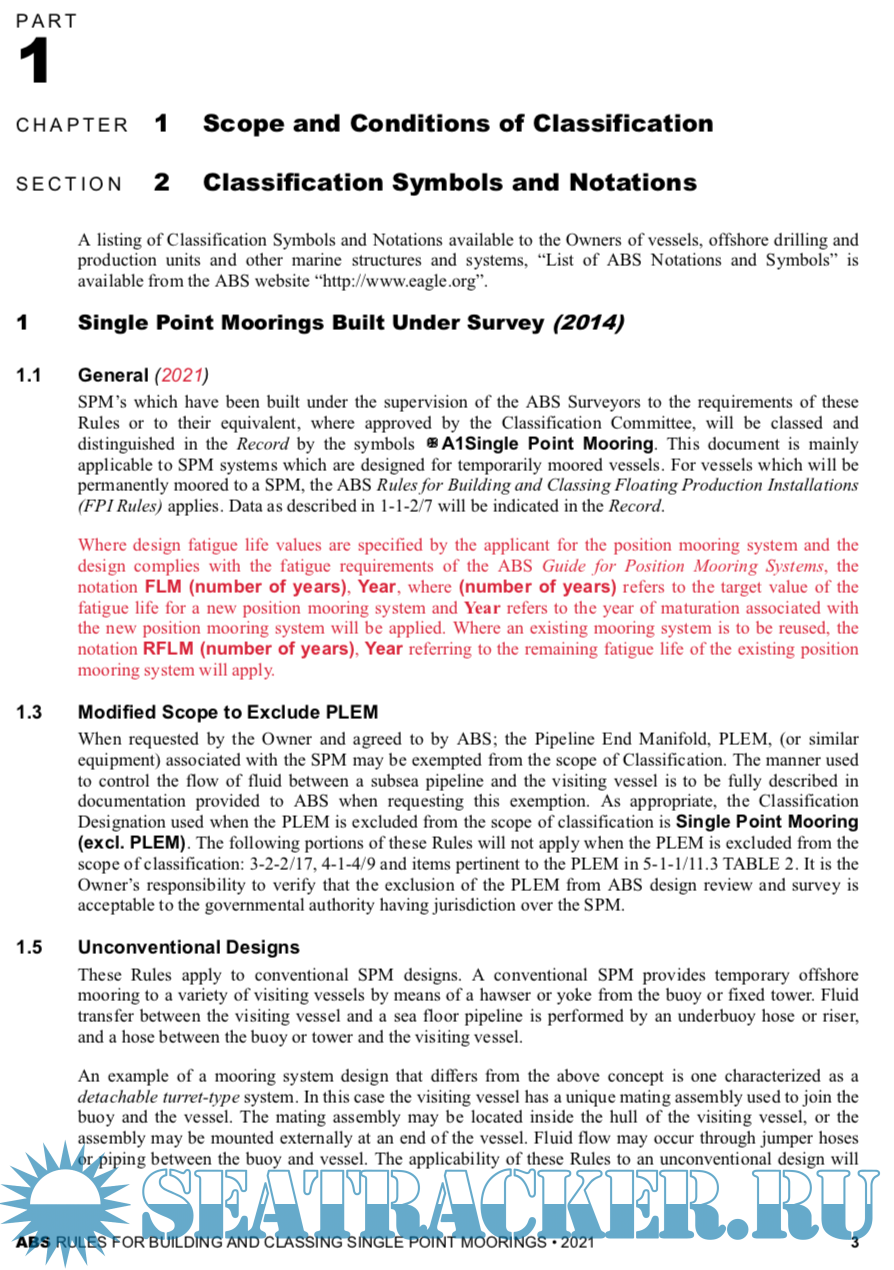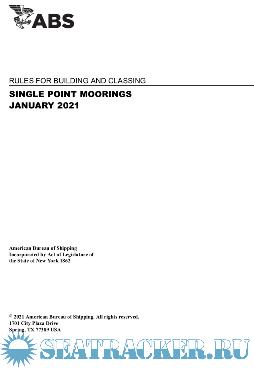 Year: 2021 Language: english Author: ABS Genre: Normative document Publisher: American Bureau of Shipping ABS Format: PDF Quality: eBook Pages count: 92 Description: This edition of the ABS Rules for Building and Classing Single Point Moorings (SPMs) primarily reflects changes in format and references to ABS and other standards that have occurred since the previous edition was issued. Changes to the technical criteria include revisions made to other pertinent ABS Rules that are the basis of SPM criteria; such as, the introduction of an adjustment factor (Q) to account for higher strength steels in the determination of buoy scantlings. Also the section on Moorings and Anchoring Section (3-4-1, herein) has been updated to reflect industry practice and to specifically allow the option to use the criteria found in the ABS Rules for Building and Classing Floating Production Installations for this topic. PART 1 (1 January 2008) For the 2008 edition, Part 1, "Conditions of Classification" was consolidated into a generic booklet, entitled Rules for Conditions of Classification – Offshore Units and Structures (Part 1) for all vessels other than those in offshore service. The purpose of this consolidation was to emphasize the common applicability of the classification requirements in "Part 1" to ABS-classed vessels, other marine structures and their associated machinery, and thereby make "Conditions of Classification" more readily a common Rule of the various ABS Rules and Guides, as appropriate. Thus, this supplement specifies only the unique requirements applicable to single point moorings. This supplement is always to be used with the aforementioned Rules for Conditions of Classification – Offshore Units and Structures (Part 1).