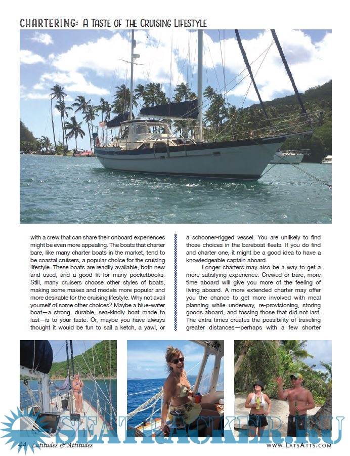Year: 2021 Language: english Author: Latitudes and Attitudes Genre: Periodical (magazine) Format: PDF Quality: eBook Pages count: 243 Description: Latitudes & Attitudes Magazine was the #1-selling marine title on the newsstands for the the majority of its 15-year history. It was started in 1996 by me, Bob Bitchin, and my wife, Jody, with a little help from Keith “Bandit” Ball, editor of Easyriders, and Bob Clark, creator of StreetChopper, Trucking, Hot VWs, VW Trends, and a large number of other magazines. Jody and I had just returned from cruising the world and wanted to create a magazine to let “regular boaters and cruisers” know they were not alone, that not all who owned boats were rich, and that many people worked on their own boats and cruised the waterways of the world.