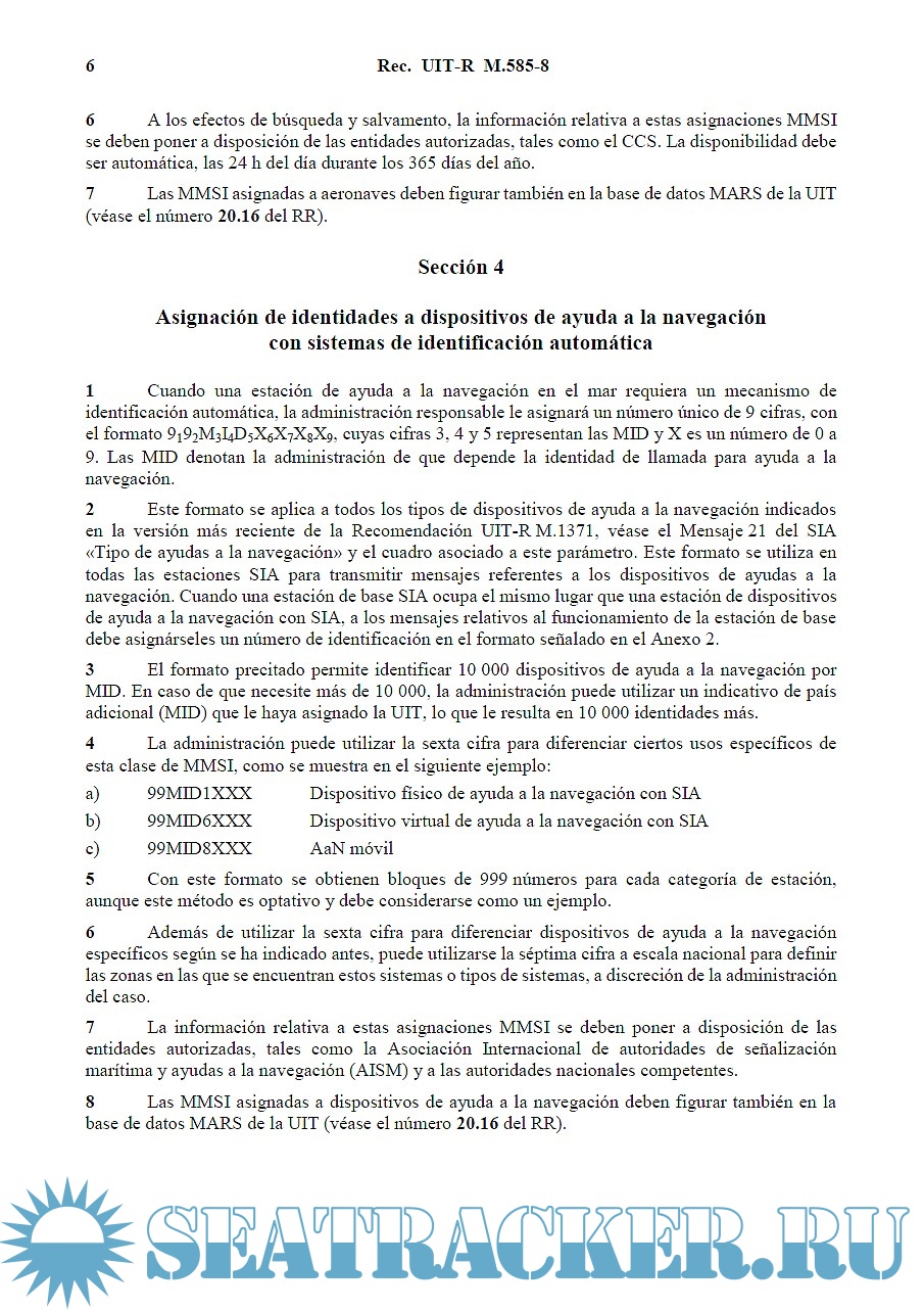 Description: This ITU Recommendation provides guidance to administrations for the assignment and conservation of identities for the maritime mobile service. Limitations and constraints for assignments regarding satellite services of the GMDSS are here described.
