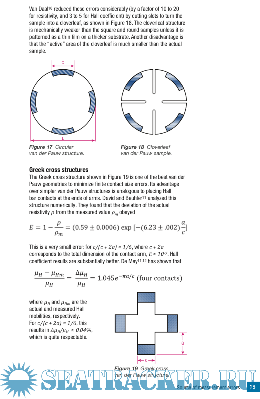 Year: 2021 Language: english Author: Jeffrey Lindemuth, PhD Genre: Handbook Publisher: Lake Shore Cryotronics Format: PDF Quality: eBook Pages count: 88 Description: This guide will start by reviewing methods to measure the resistivity of materials, then the theory of Hall measurements will be discussed. We will review major sources of measurement errors: both intrinsic and geometric sources of errors. We will describe the methods developed to minimize the effects of these errors. As we will see, as the materials of interest have evolved over time, so have the methods to minimize these errors.