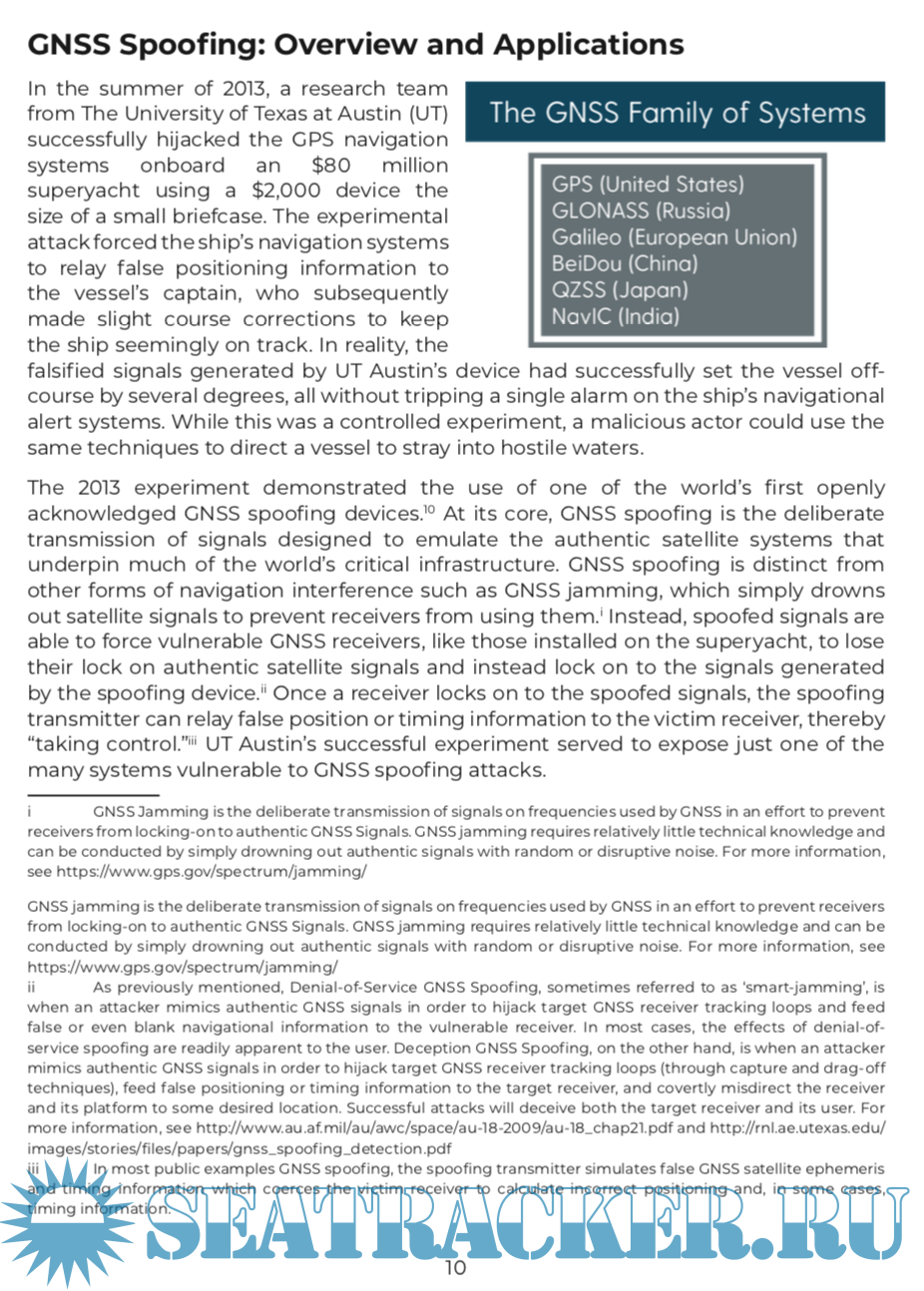 Description: GPS and other Global Navigation Satellite Systems (GNSS) are used in everything from cellular communication networks, to basic consumer goods, high-end military systems, and stock trading inputs. But these systems are vulnerable: by attacking positioning, navigational, and timing (PNT) data through electronic warfare (EW) capabilities, state and non-state actors can cause significant damage to modern militaries, major economies, and everyday consumers alike.1 2 3 With recent technological advances, the tools and methodologies for conducting this interference are now at a high risk for proliferation. GNSS attacks are emerging as a viable, disruptive strategic threat.
