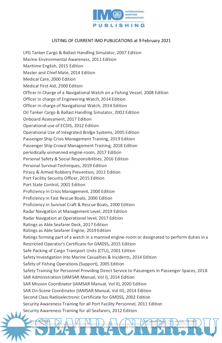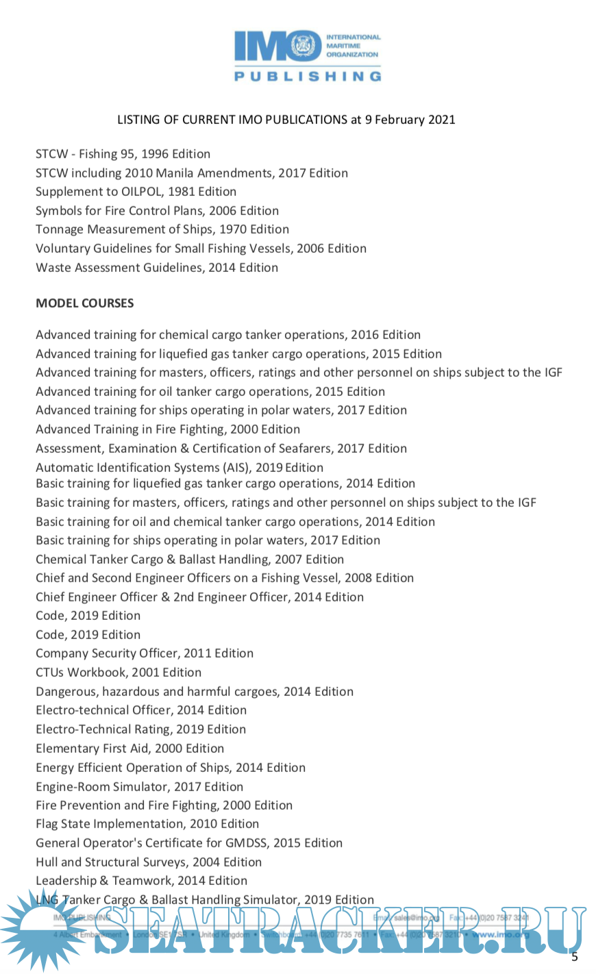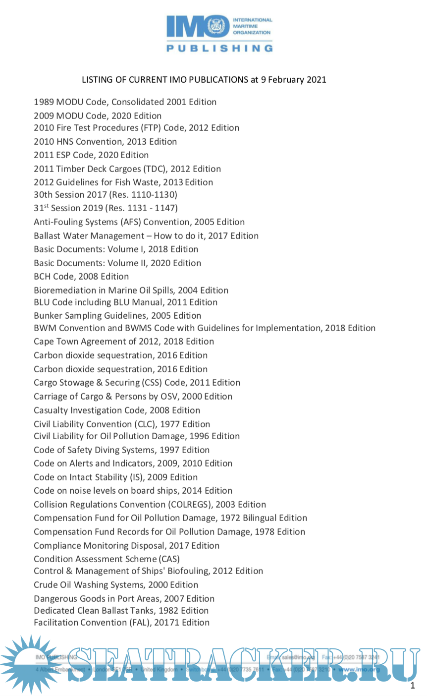 Listing Of Current Imo Publications At 9 February 2021