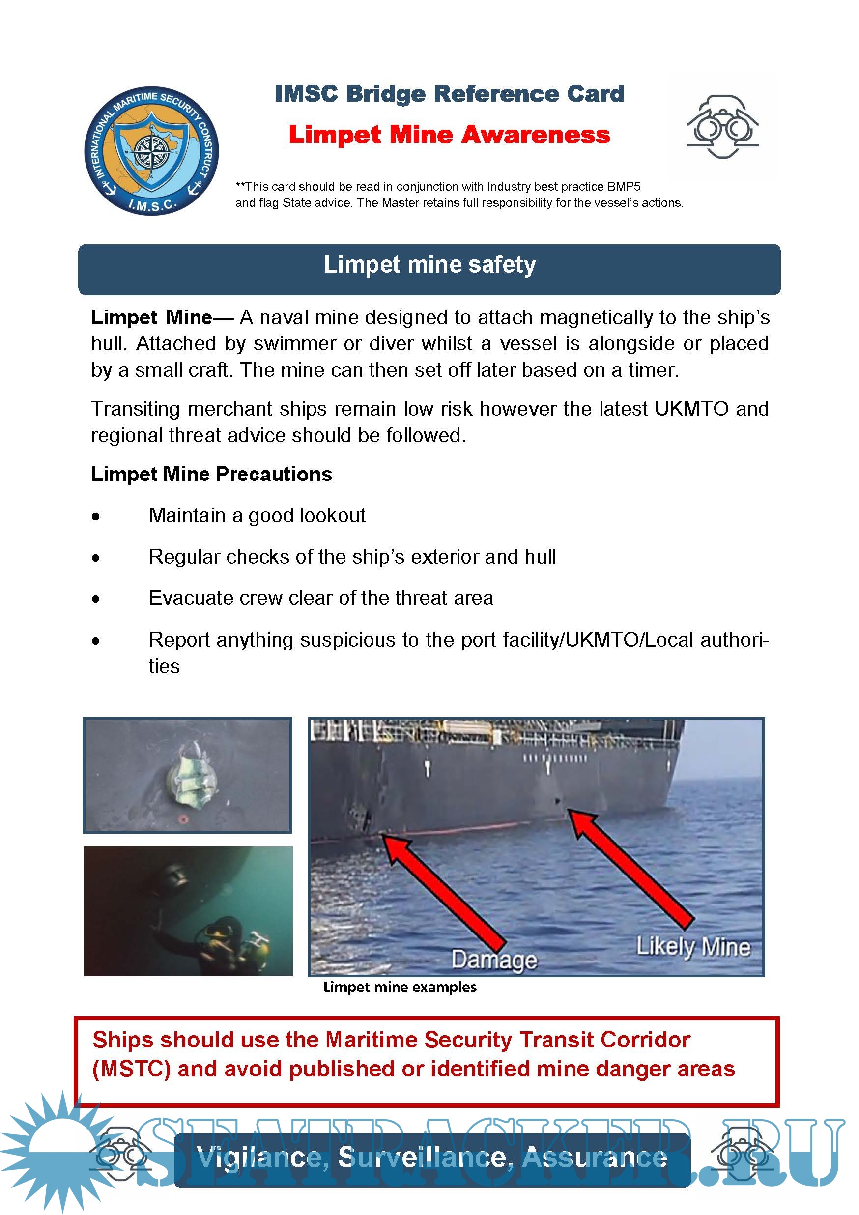risk of floating and limpet mines in the Middle East region. The IMSC Brochure may also be useful.