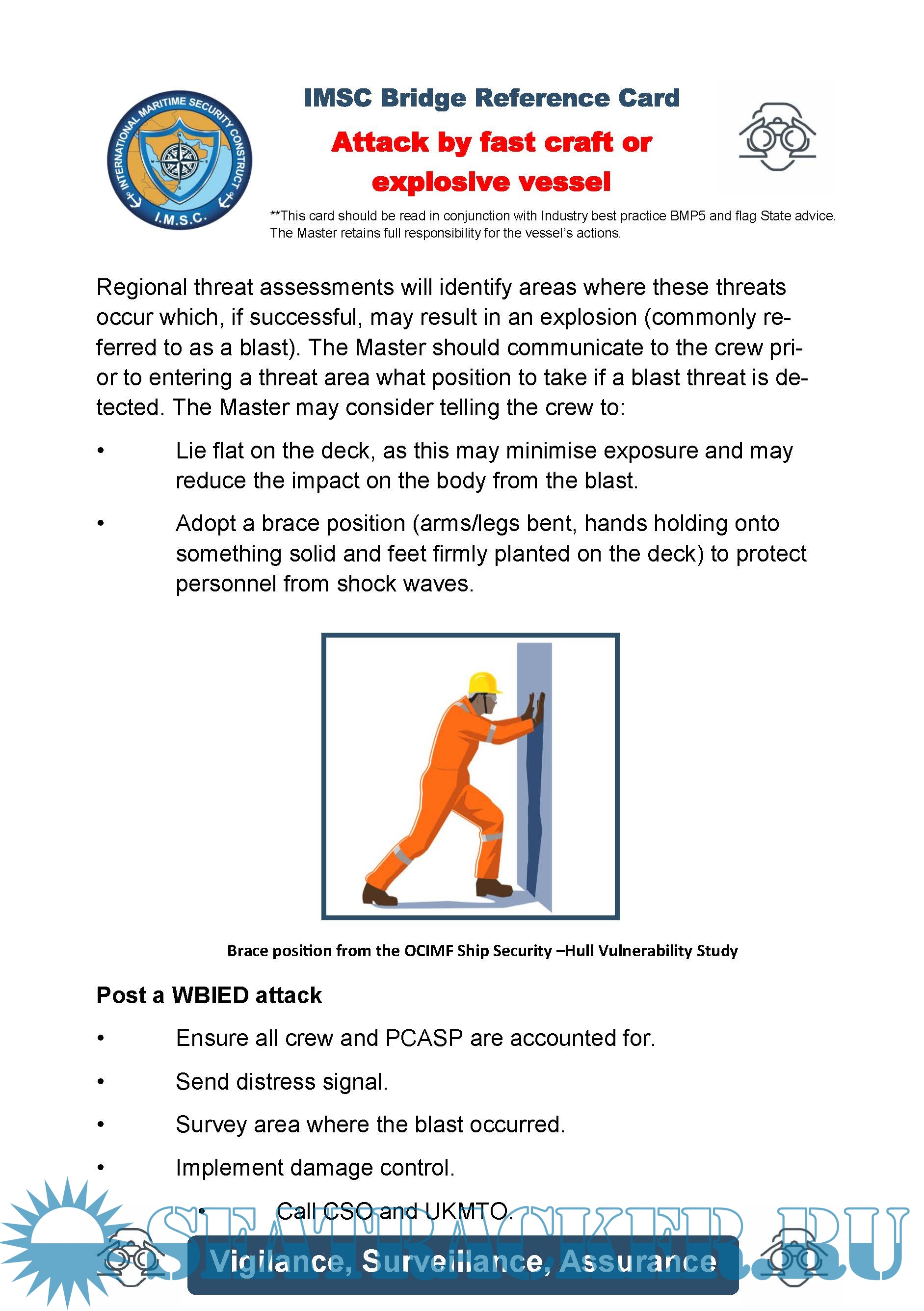 • OCIMF Bridge Cards: The Oil Companies International Marine Forum (OCIMF) Maritime Security Committee has produced