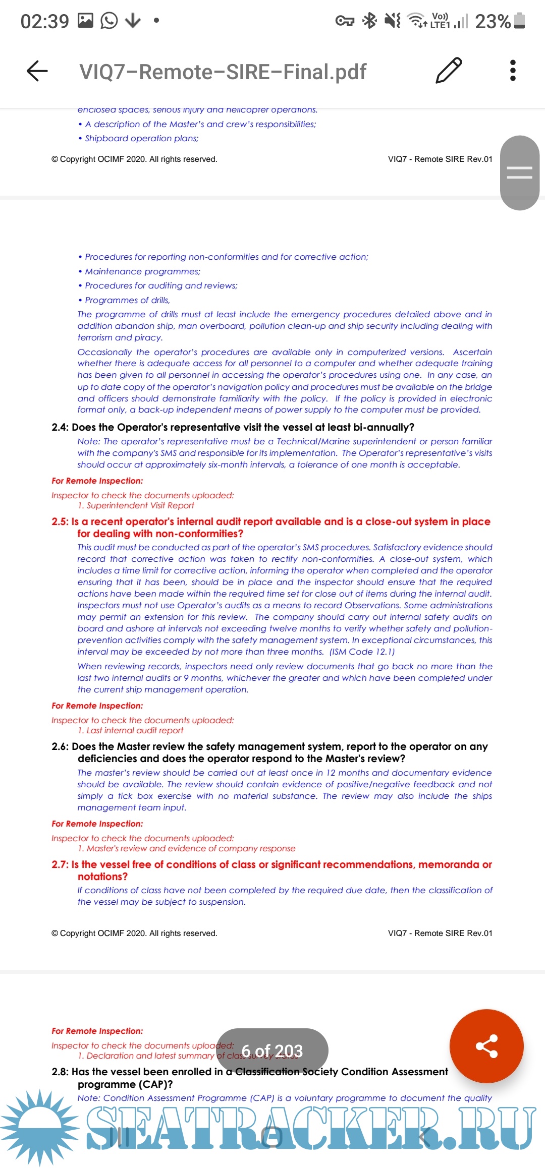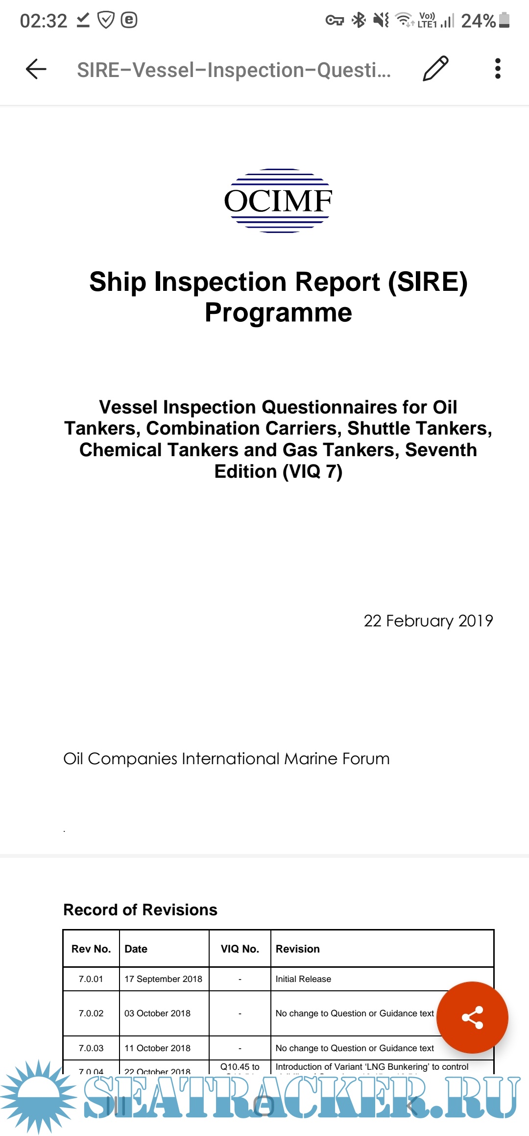 SIRE Vessel Inspection Questionnaire - VIQ 7 - OCIMF - OCIMF [2018, PDF]