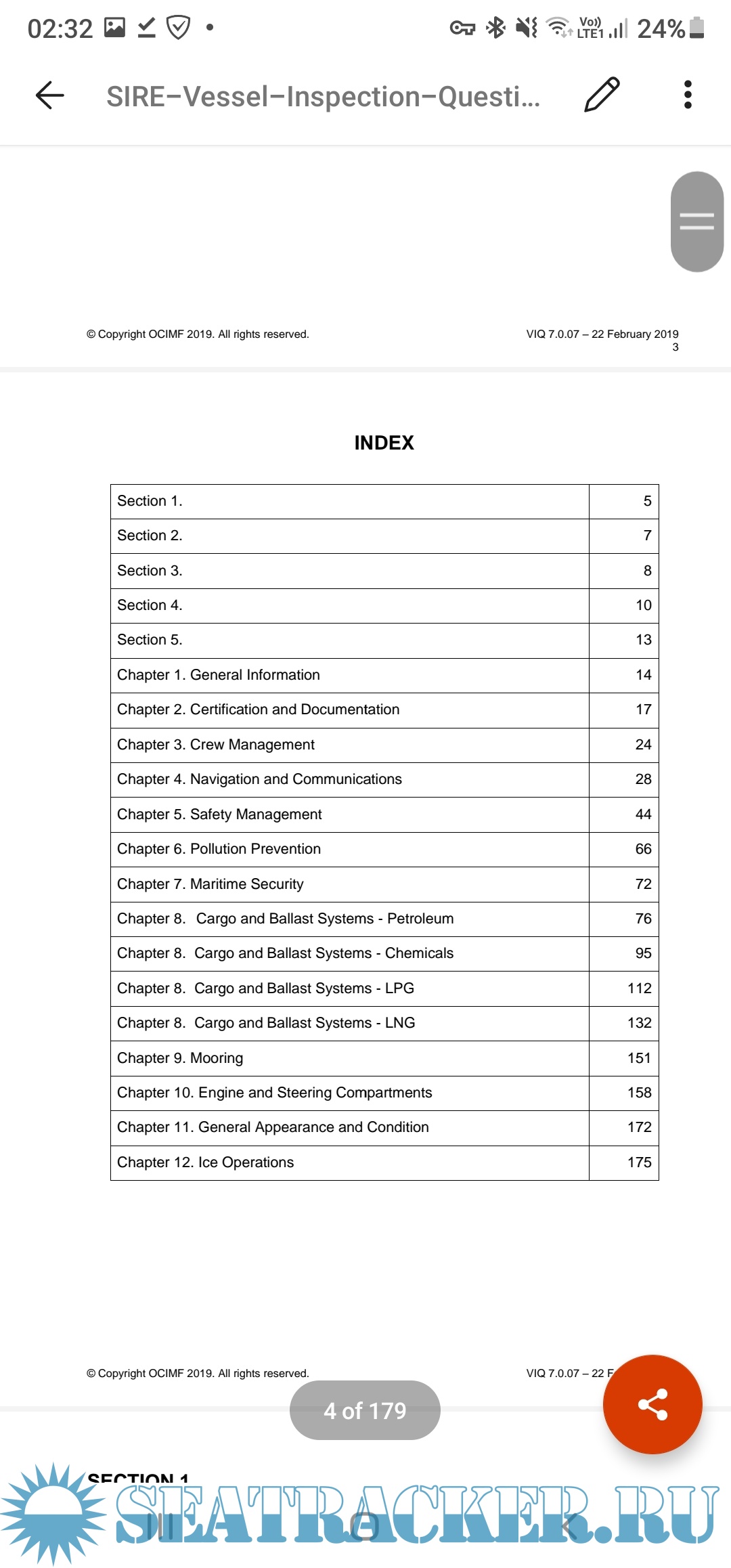 The index and cover page is taken from the original VIQ7 as the remote SIRE VIQ as given by OCIMF doesnot have a specific index page and poster