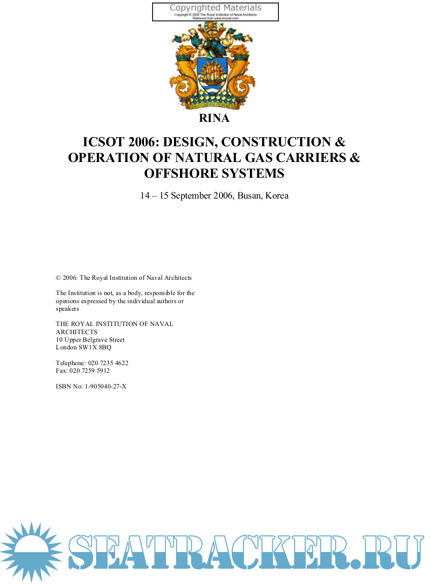 Year: 2006 Language: english Author: The Royal Institution of Naval Architects Genre: International Conference Publisher: The Royal Institution of Naval Architects Edition: 14 – 15 September 2006 ISBN: 1-905040-27-X Format: PDF Quality: eBook Pages count: 787 Description: Currently, MISC as the front-runner of LNG Carriers Ship Owner/Operator in the world and combined experience more than 20 years would share the experience in design review, quality management and project management in order to promote high quality of standards in terms of safety and reliability with other Ship Owners.