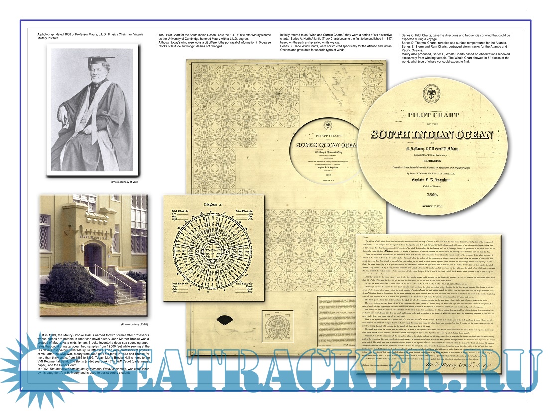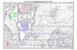 Description: Pilot Charts depict averages in prevailing winds and currents, air and sea temperatures, wave heights, ice limits, visibility, barometric pressure, and weather conditions at different times of the year. The information used to compile these averages was obtained from oceanographic and meteorologic observations over many decades during the late 18th and 19th centuries.