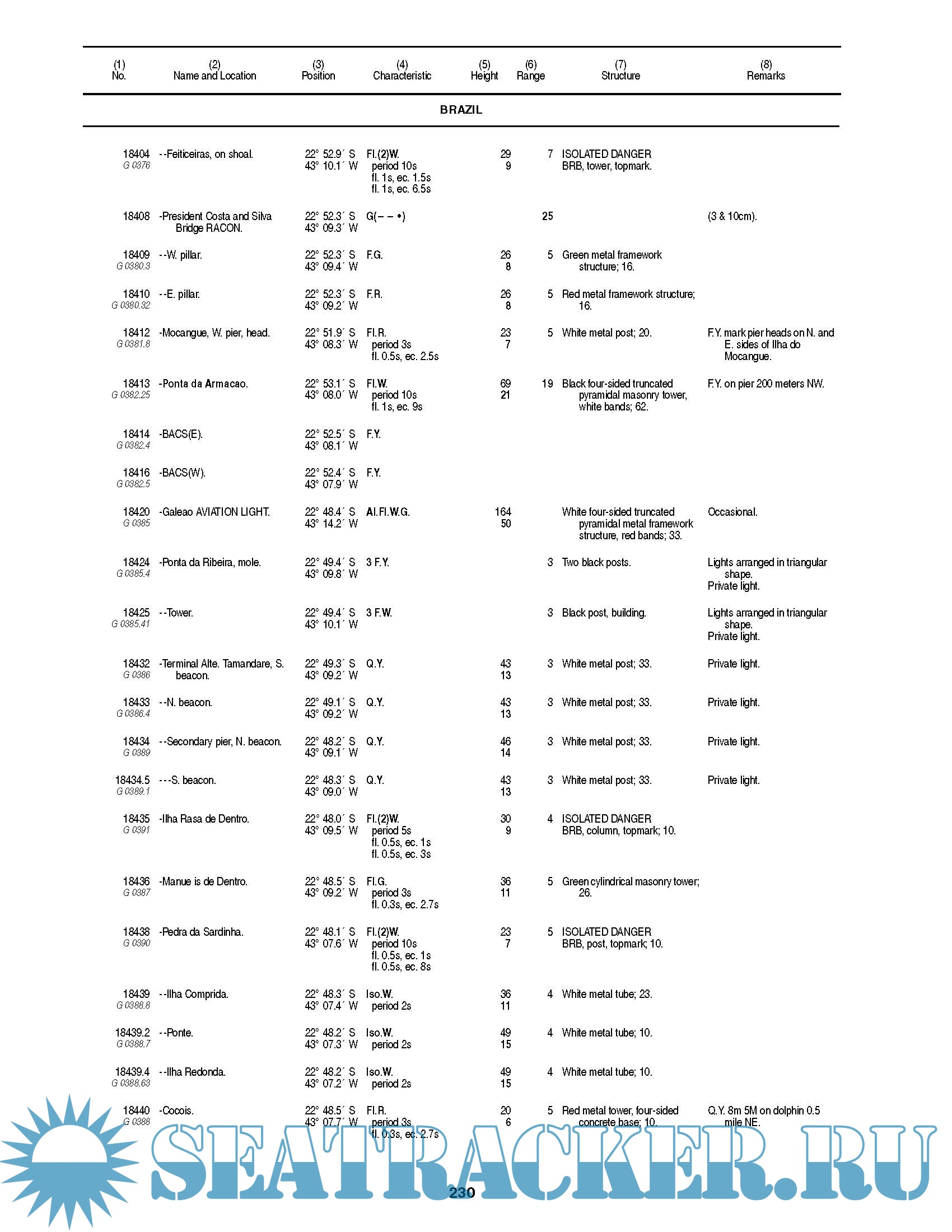 Description: The List of Lights, Radio Aids and Fog Signals is published in seven volumes, as Publication nmbers 110 through 116. Each volume contains lights and other aids to navigation that are maintained by or under the authority of foreign governments.