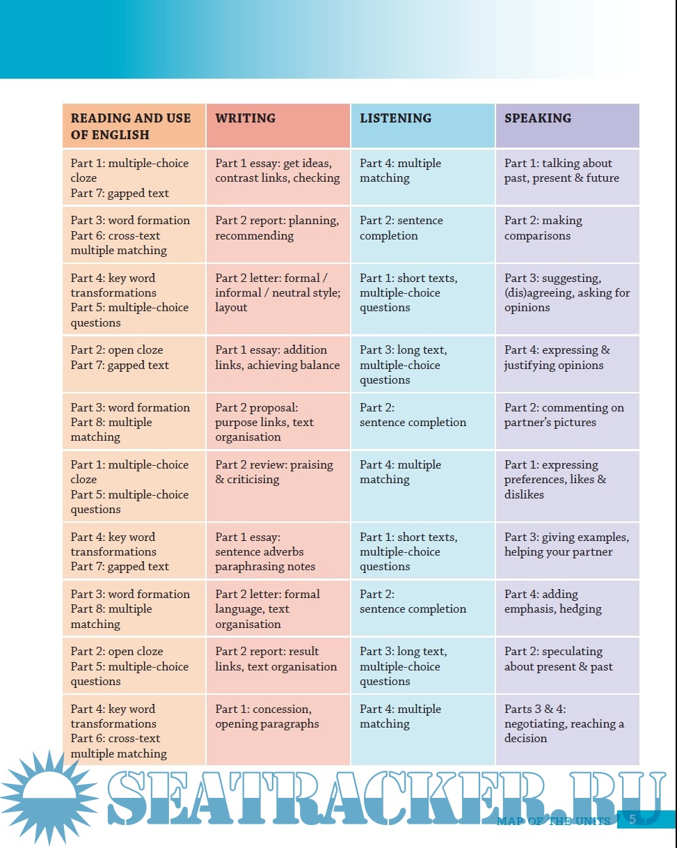 there are further sample tasks and model answers for each of the task types, while for Speaking there are lists of useful expressions for each part.