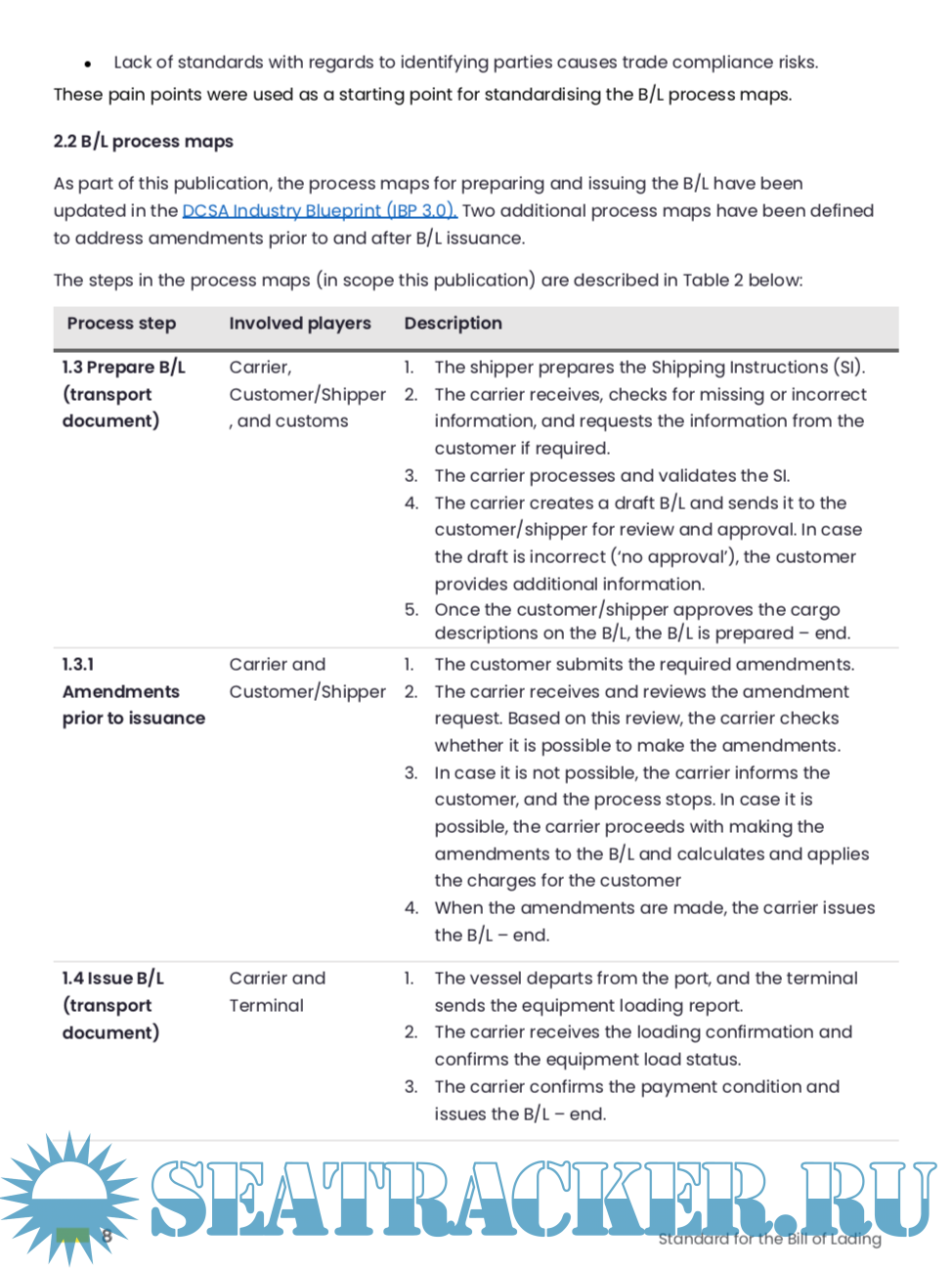 Standard for the Bill of Lading: A roadmap towards eDocumentation