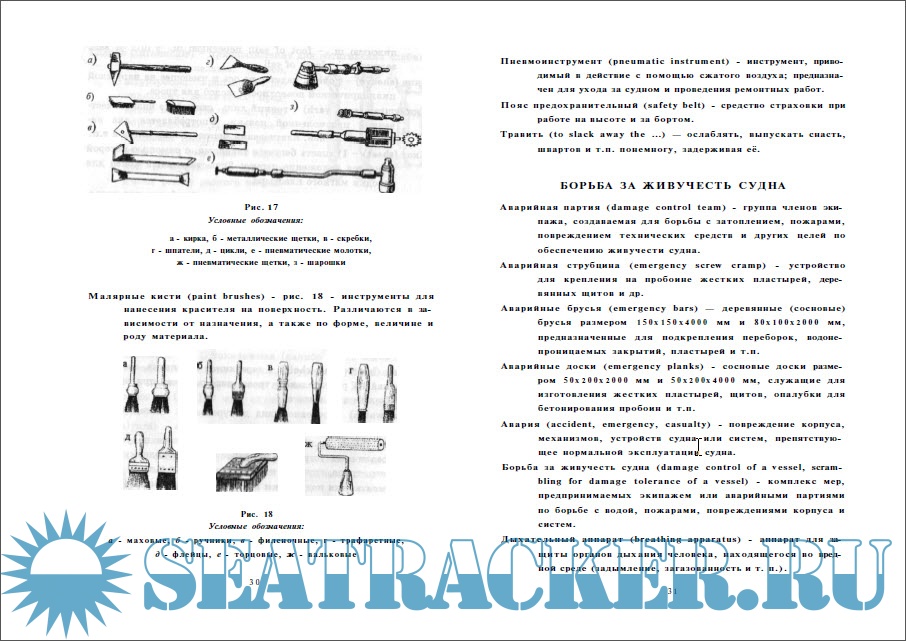 Год выпуска: 2003 Язык: русский Автор: Захаров А.В., Захарьян Р.Г., Кургузов С.С., Лихачев А.В., Развозов С.Ю., Самарин В.И., Страшко А.Н., Чекрыгин Н.В. Издательство: СПб.: ГМ А им. адм. СО. Макарова ISBN: УДК 656.61.052 Формат: PDF/DjVu Качество: Отсканированные страницы + слой распознанного текста Количество страниц: 45 Описание: В словаре даны определения основных морских терминов, знание которых является неотъемлемой частью подготовки вахтенных помощников капитана, а также необходимо матросам и палубным практикантам при выполнении на судне своих служебных обязанностей. Издание содержит иллюстрации, способствующие лучшему усвоению материала. Доп. информация: Краткий словарь морских терминов для курсантов 1-го курса судоводительского факультета и студентов 2-го курса заочного обучения по специальности 24 0200 «Судовождение на морских путях»