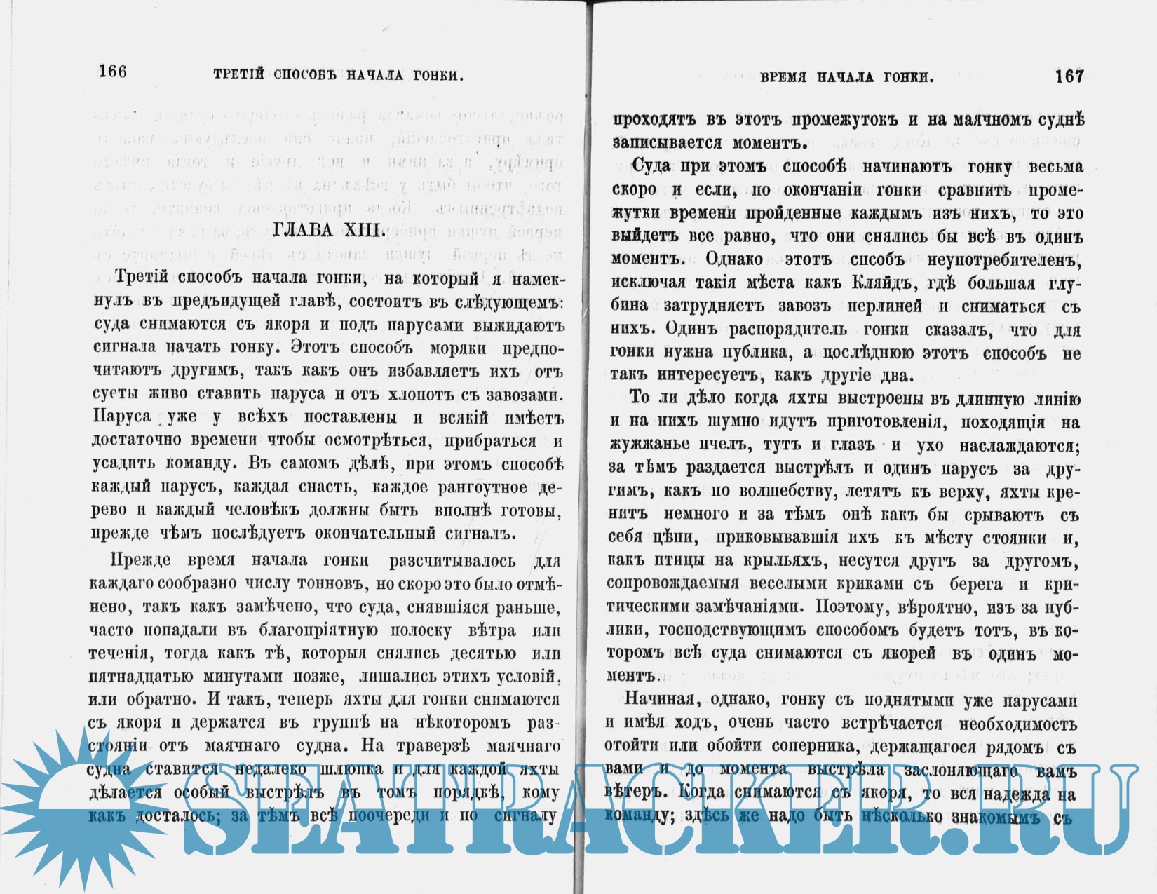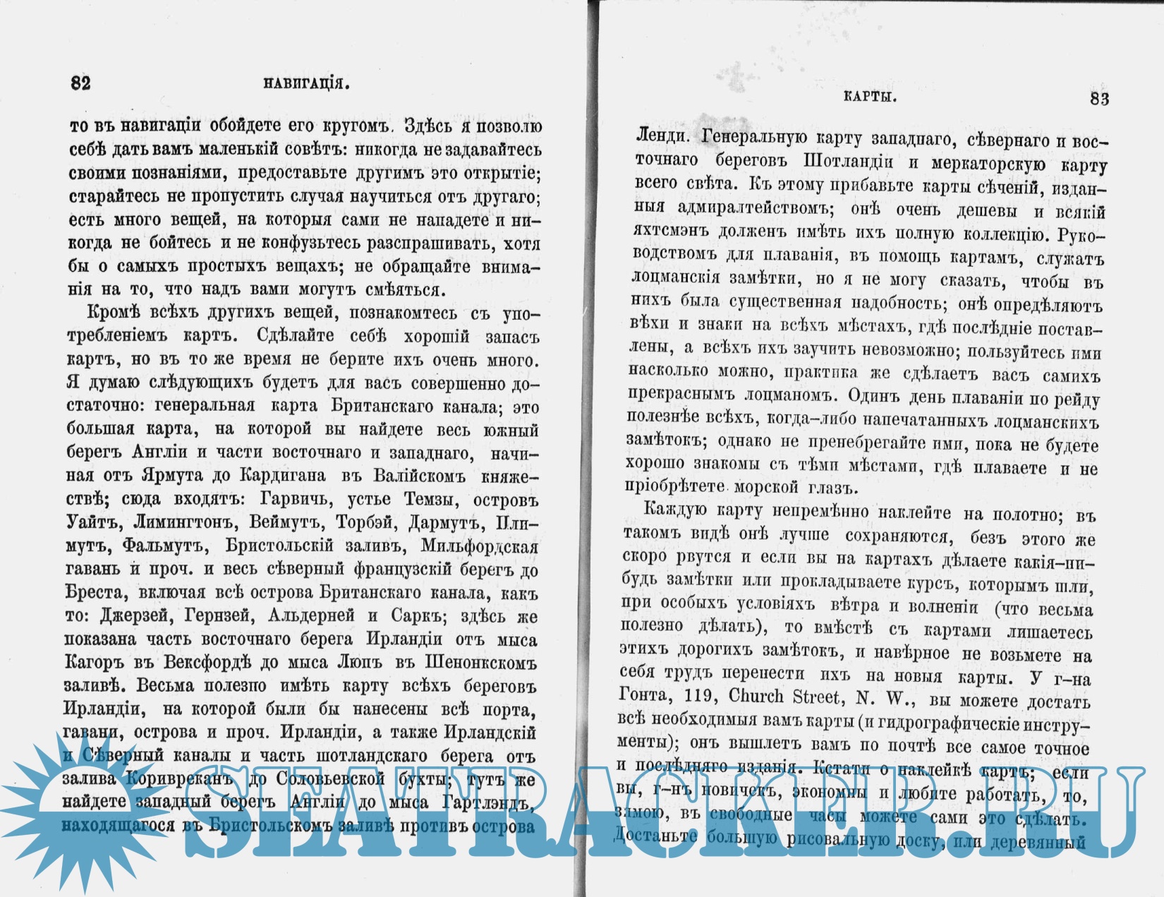 Мне случалось видеть много яхтсменов, затруднявшихся начать свое новое поприще, как от недостатка наставлений по управлению яхтой, так и от неумения заставить себя понять экипаж яхты, конечно, это главным образом происходило от неопытности их, а также от недостатка подобного издания, как мое руководство. По крайней мере, судя но приему, сделанному двум изданиям моей книги, можно сказать, что она пополнила значительный недостаток сведений моих собратий-любителей
