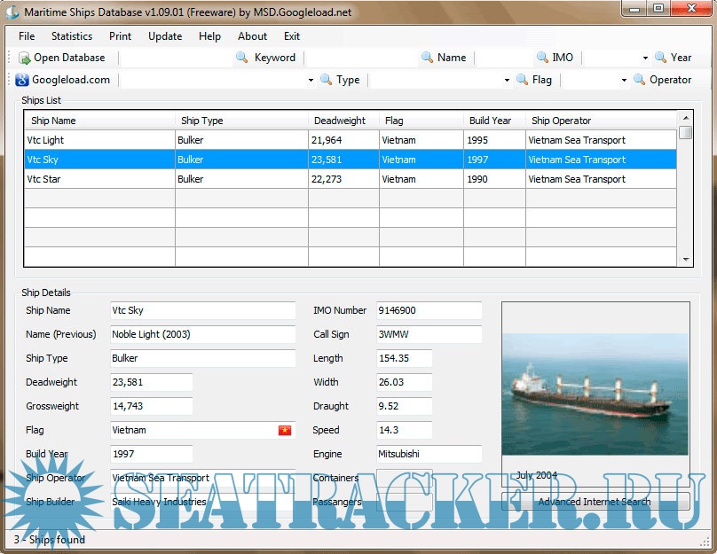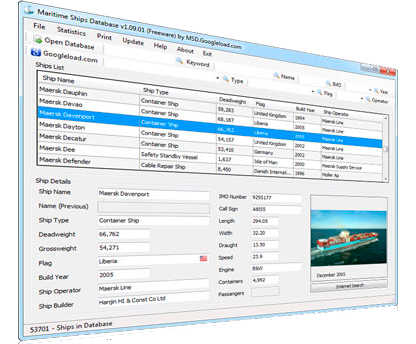 Year: 2011 Version: 1.09.01 Developer: ShipsEducation Platform: PC (Windows) Windows7 compatibility: yes System Requirements: 1.6GHz (required) 3GHz (recommended) Microsoft .NET Framework 2.0, Microsoft .NET Framework 3.5 (recommended) Localization: english Crack: Not needed Description: Welcome to the Maritime Ships Database! Maritime Ships Database is a ship database covering engine driven ships since the invention of steam engines. Added to present coverage of present world fleet details as well as ships on order, Maritime Ships Database is adding ships of the past for the purpose of complete coverage of analyses of ships and their players over the past 150 years. Covering more than 57 000 ships and offshore rigs as well as ships on order, Maritime Ships Database is offering its customers a unique tool for fast access to market segments by professional used ship types. An open offered mathematical model is offering the user a theoretical way of measuring ship values linked to market activity at any time. This is making it possible to measure fleet values of any size from owner fleets to national fleets by ethnical origin or address. Software Contents The following ship information is, as a rule, available on MSD : - Ship identification - Ship manager - Ship builder - Engine maker - IMO, Call numbers However, if information has not been made available to MSD, then the relevant field and corresponding heading does not appear.