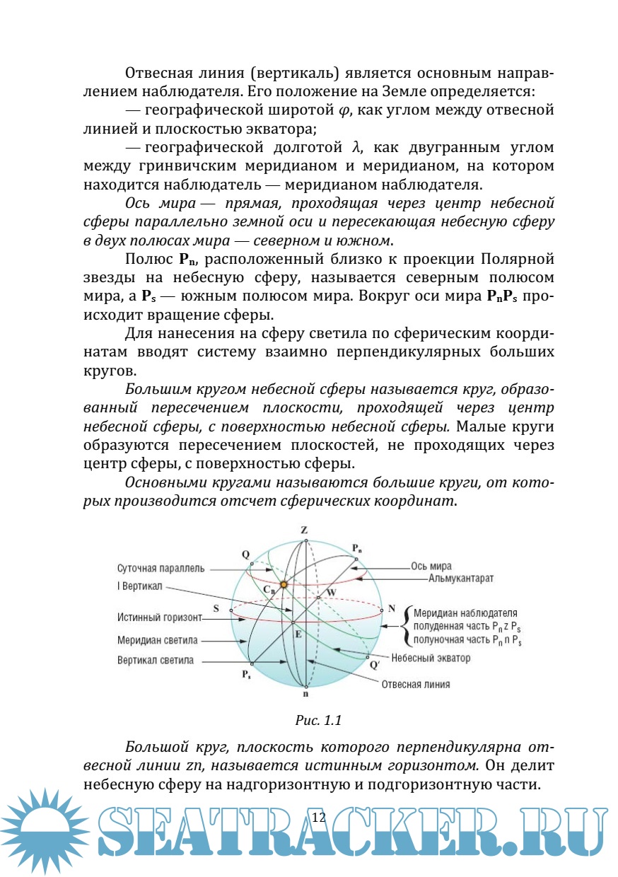 Описание: Учебное пособие включает описание основ мореходной астрономии и физических особенностей движения светил, наблюдения которых позволяют по рекомендуемым методикам производить контроль работы судовых курсоуказателей и контроль движения судна в открытом море независимыми от работы спутниковых систем методами.