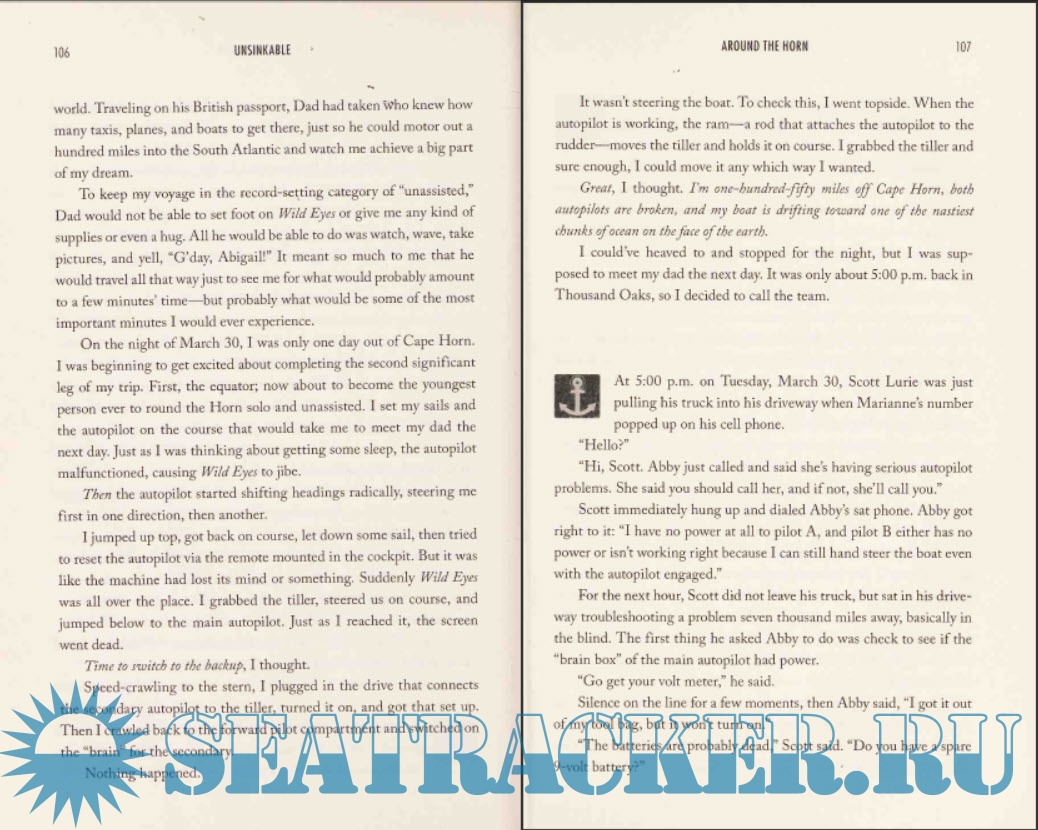 Year: 2011 Language: english Author: Abby Sunderland, Lynn Vincent Genre: History Publisher: Thomas Nelson Edition: First ISBN: 978-1400203086 Format: PDF Quality: Scanned pages Pages count: 240 Description: Abby Sutherland grew up sailing. Her father, Laurence, a shipwright, and her mother, Marianne, wanted their kids to develop responsibility, to see other cultures, to experience the world instead of watching it on TV. So they took them sailing down the coast of Mexico... for three years. When Abby was thirteen, she began helping her father deliver boats and soon was sailing solo. She loved being on the open ocean, the spray in her face, the wind in her hair. She began to dream of sailing the world. But fewer people have successfully solo-circumnavigated the globe than have traveled into space. It is a challenge so immense that many have died trying, and all have been pushed beyond every physical, emotional, psychological, and spiritual limit. In Unsinkable, you will follow Abby into the depths through a gripping and evocative firsthand account that starts prior to her departure, travels through her daring (and sometimes near-death) encounters on the open sea, to her dramatic rescue in the remotest part of the Indian Ocean. Today, when the most productive thing a teenager may do is play videogames, Abby's courage and tenacity shows us all what can happen when we choose to challenge our own limits, embrace faith, and aim for what our critics say is impossible. On January 23, 2010, sixteen-year-old Abby Sunderland set sail from Marina del Rey, California, in an attempt to become the youngest person to sail solo, nonstop, and unassisted around the world. Immediately, her trip sparked controversy. What was a girl her age doing undertaking such a voyage? What were her parents thinking? Abby's critics predicted she'd make it a few weeks at most. But sailing south, she proved them wrong and became the youngest person to solo around Cape Horn, the "Mt. Everest of sailing." Crossing the Southern and Atlantic oceans, she battled vicious storms and equipment breakdowns?making one critical repair literally with a nail file and some line. Abby bested the wicked waters at the southern tip of Africa and then entered the Indian Ocean?all twenty-seven million square miles of it. Even less than a hundred years ago, having your boat become disabled in the middle of the Indian's immense rolling reaches was as good as a death sentence. The odds are better now, but not much. It was here that Abby Sutherland encountered the violent storms that would test her mettle and her will to survive?and change her life forever.