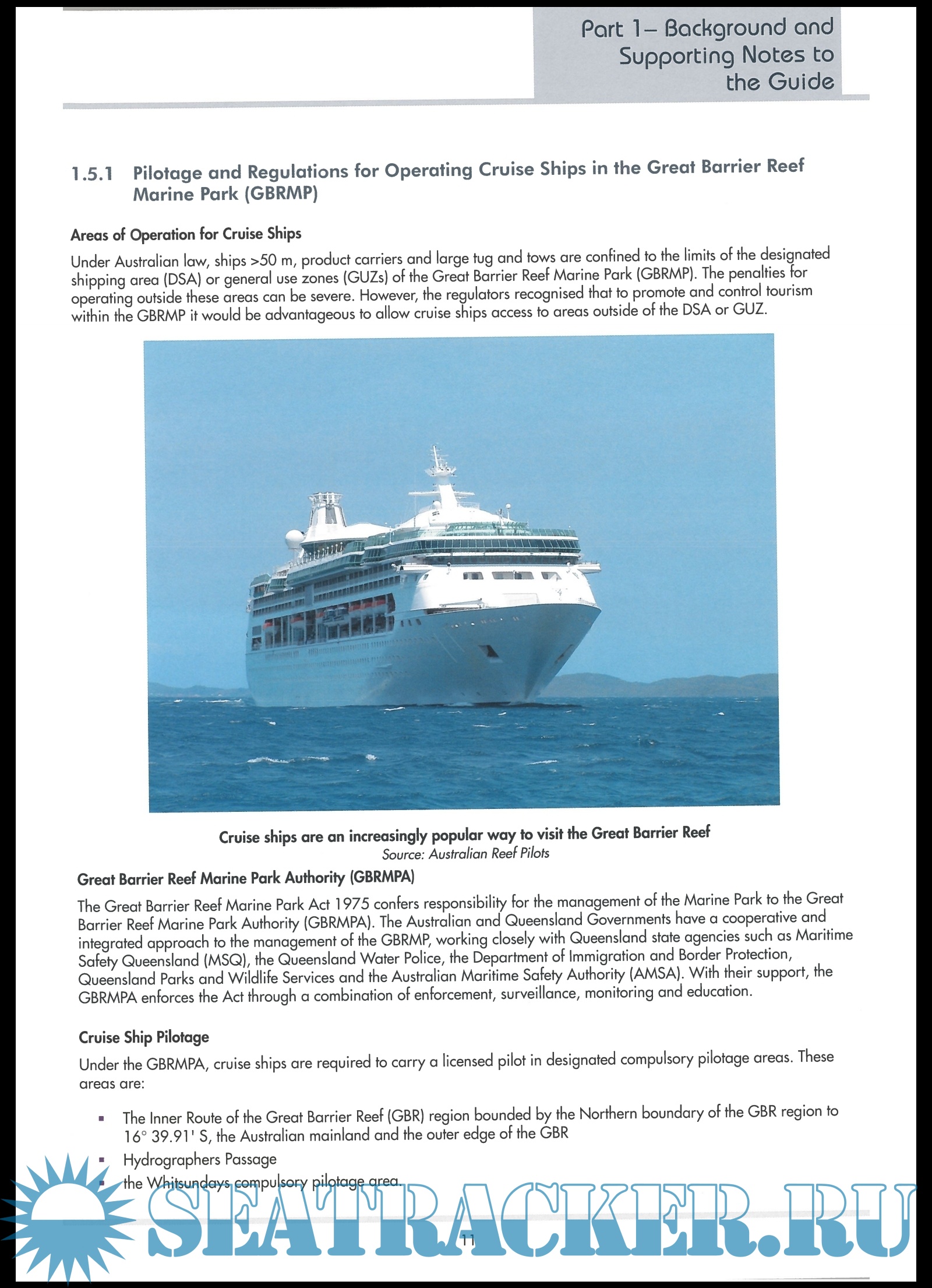 Australian Reef Pilots strongly recommend that this Guide is used, not only as part of the ship's pre-entry procedures, but
