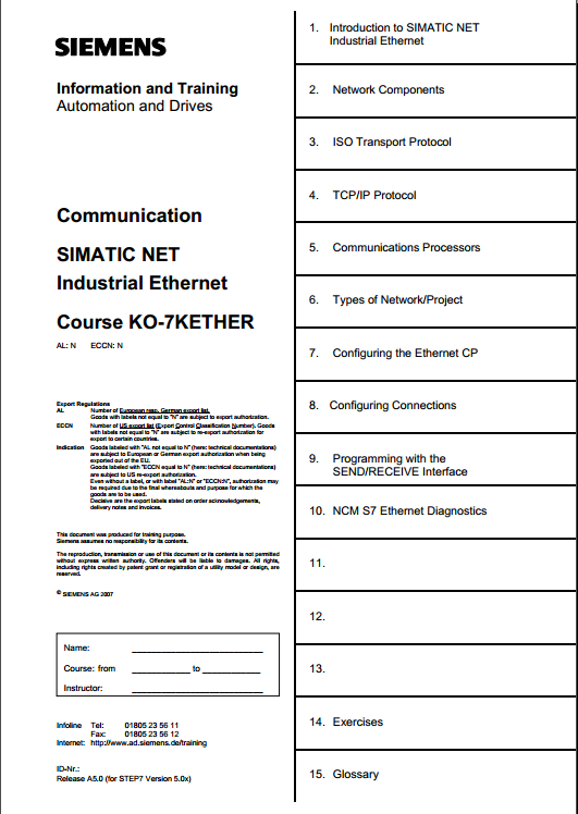 SIMATIC NET Industrial Ethernet Course KO-7KETHER