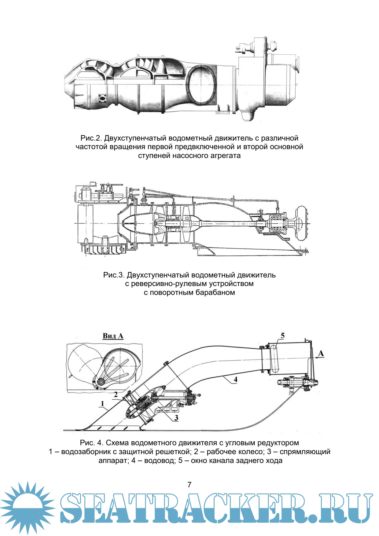 Дано описание гидродинамических и конструктивных схем водометных движителей.