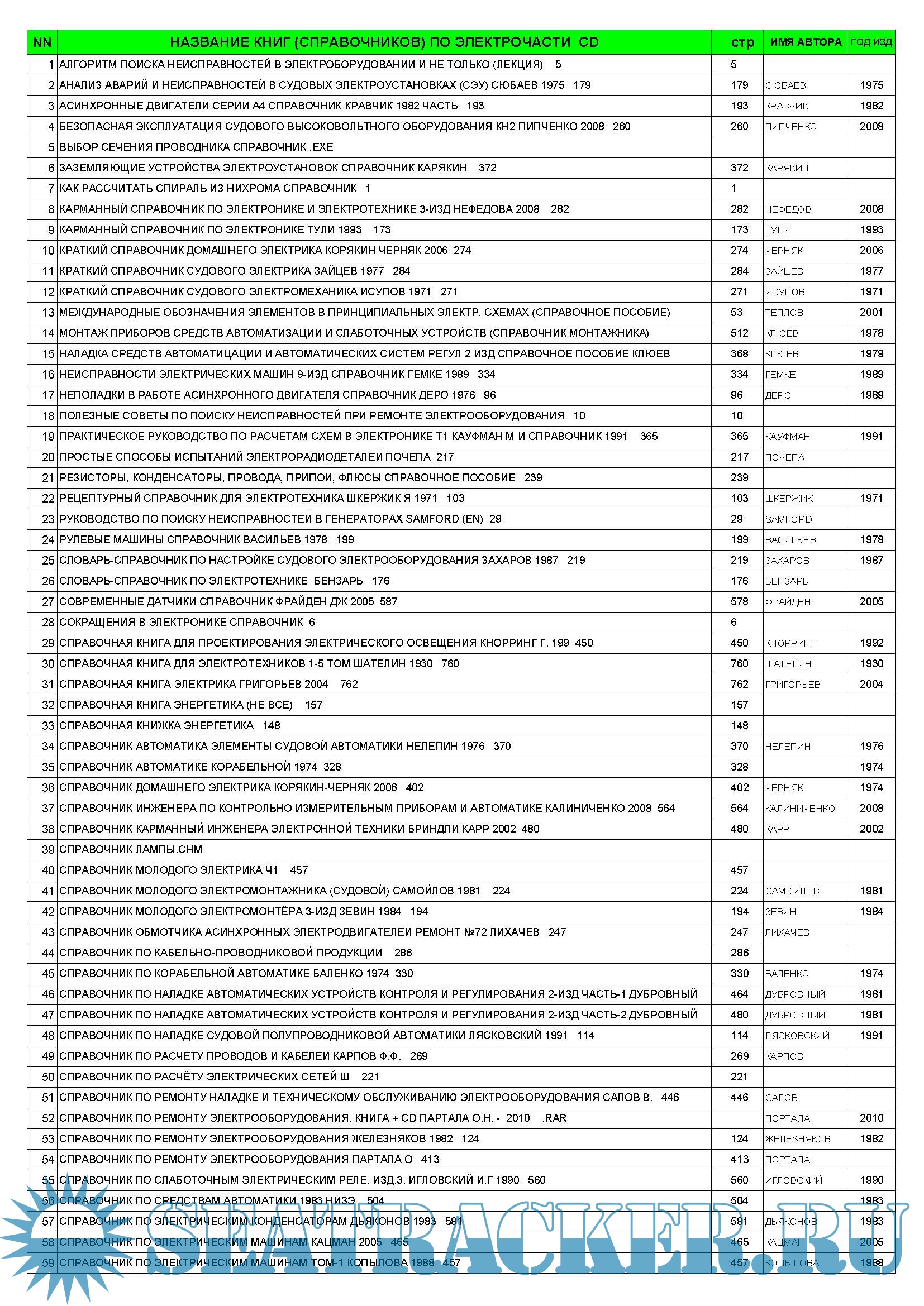 Описание: ДИСК СОДЕРЖИТ СПРАВОЧНИКИ ПО ЭЛЕКТРООБОРУДОВАНИЮ СУДНА ( и не только) ДЛЯ ЭЛЕКТРОМЕХАНИКОВ и МЕХАНИКОВ